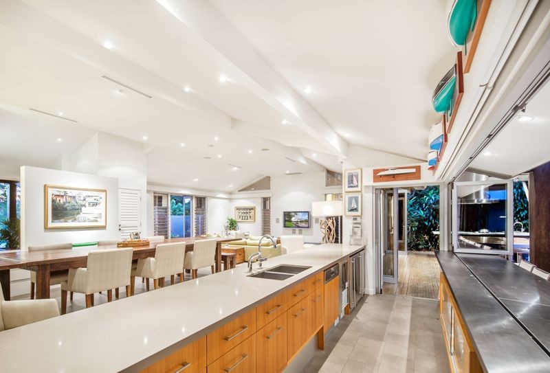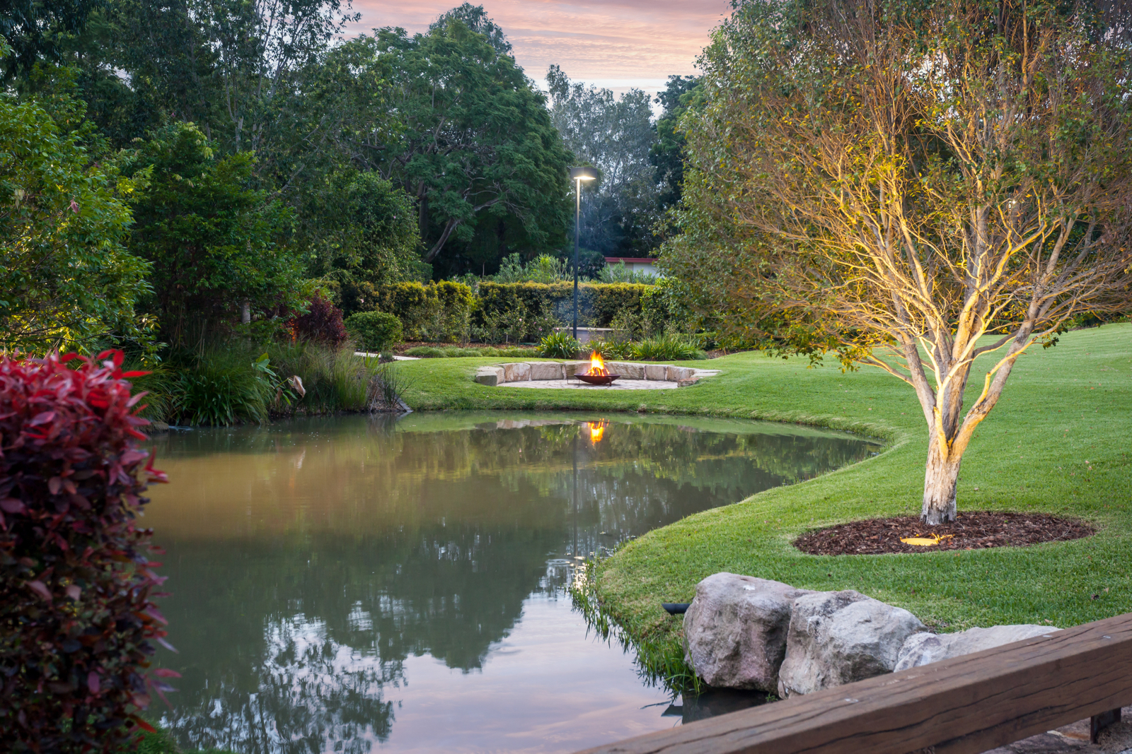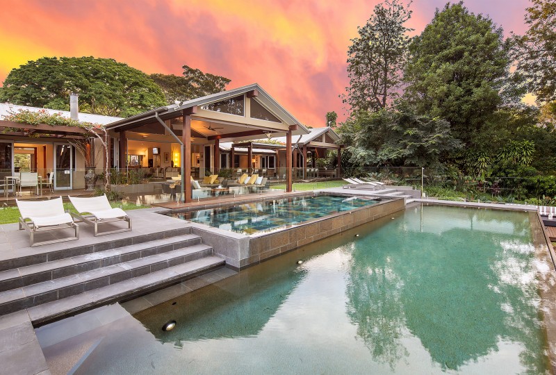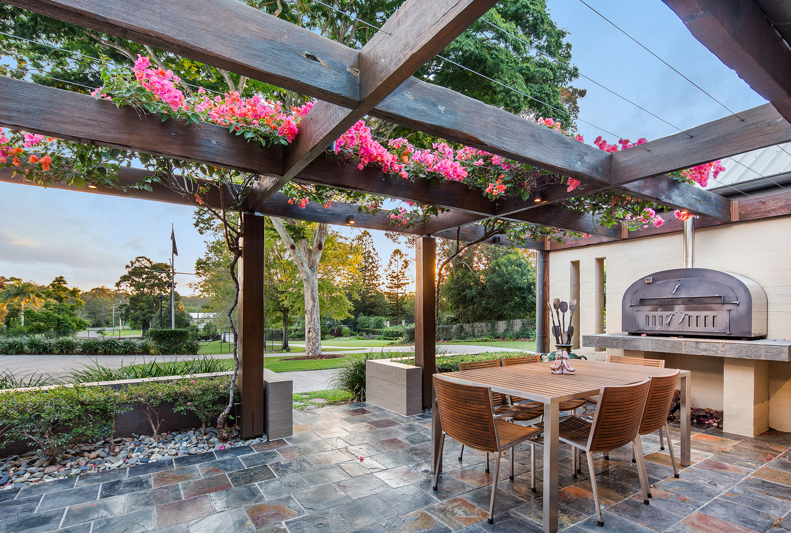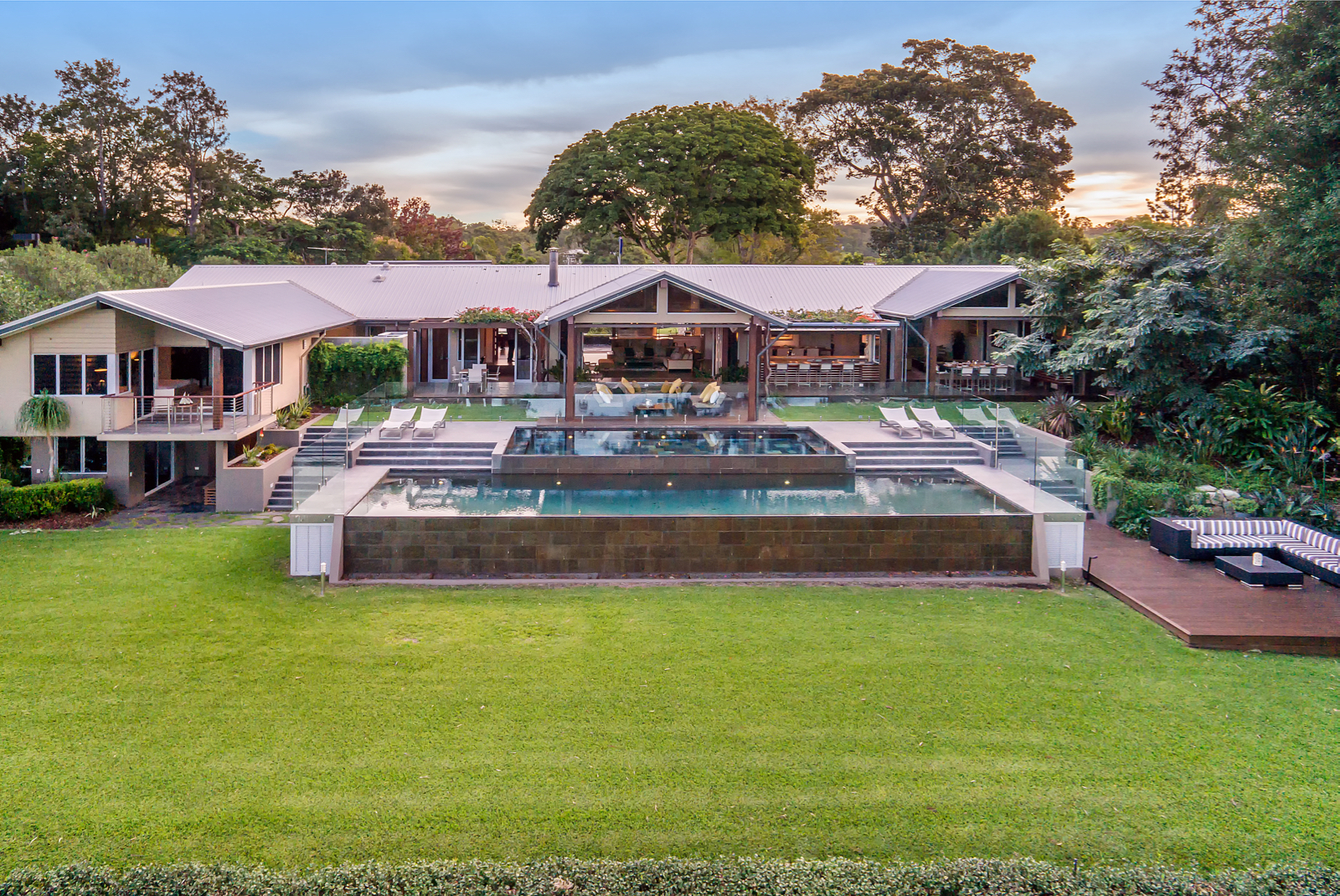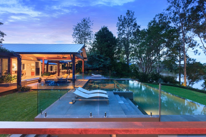 The name Barrambin, meaning 'meeting place', was retained from the property's original homestead and further embodies the hospitable nature of this home. The centre point of the building displays a studied symmetry, with the apex of the roof in line with the centre of both the alfresco lounge room and the waterfall-edge pools beyond. In this way, the sight line is drawn across a seamless view of tranquil water to the Brisbane River. Along with the pool, tennis court and 12m pontoon, the property showcases an expansive entertaining bar (with humidified fridges, ice machine and dishwasher) leading to outdoor, covered entertaining decks that can be transformed into intimate, heated enclaves in winter. Catering for a crowd is effortless with the addition of a commercial wok and Teppanyaki BBQ on the riverside, and vine-covered terrace with pizza oven on the lakeside, all with direct access to the master kitchen and to the media and billiard rooms.