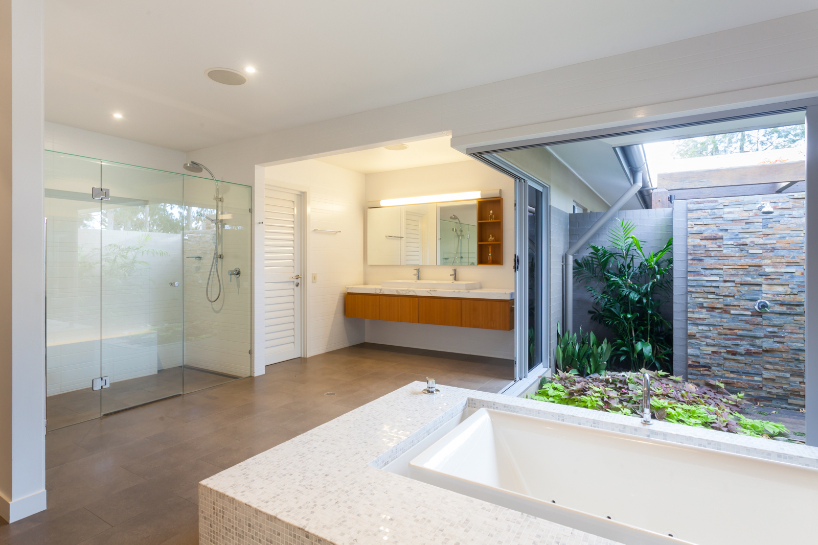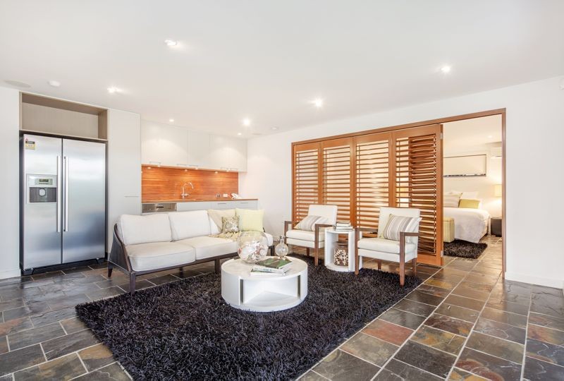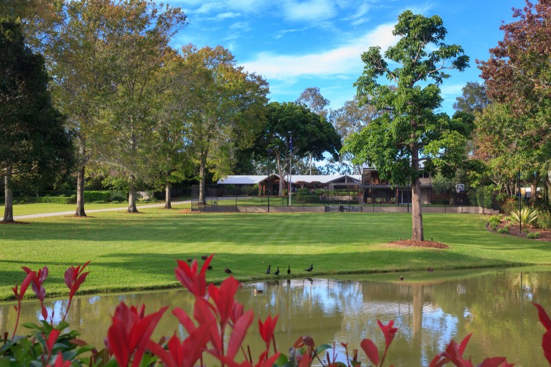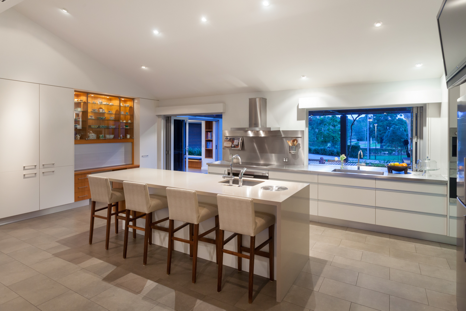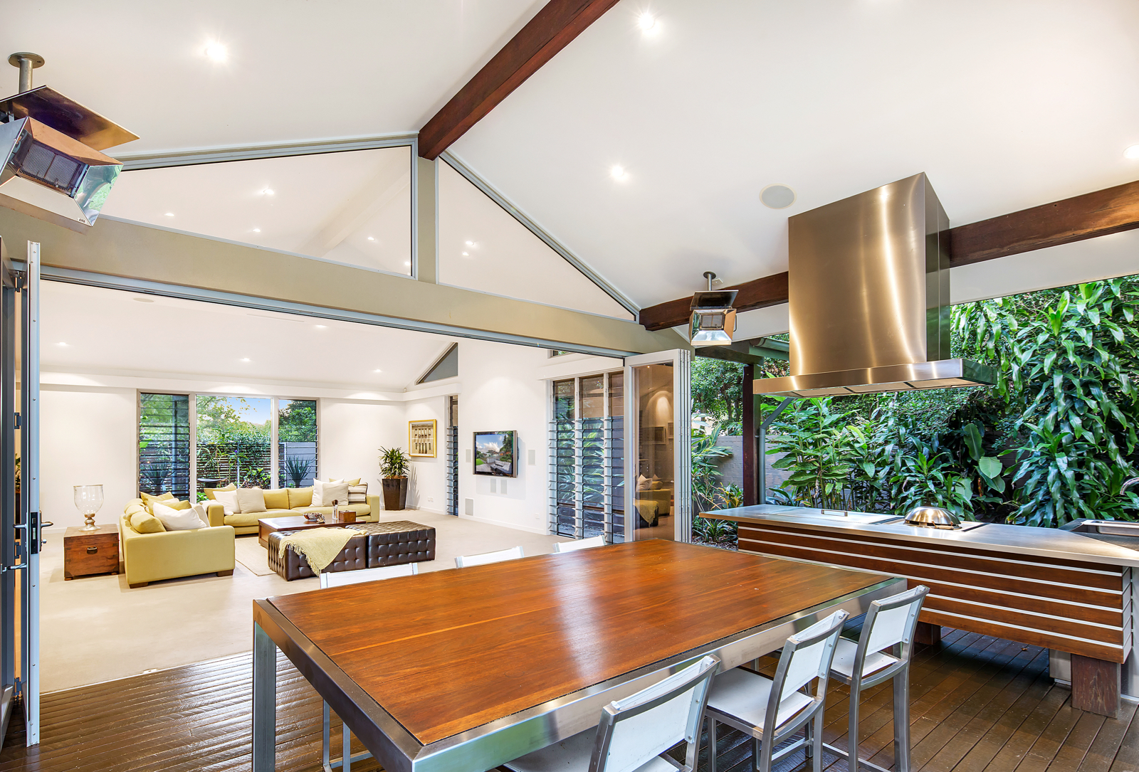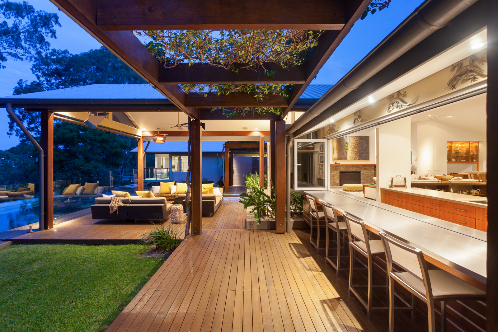 The name Barrambin, meaning 'meeting place', was retained from the property's original homestead and further embodies the hospitable nature of this home. The centre point of the building displays a studied symmetry, with the apex of the roof in line with the centre of both the alfresco lounge room and the waterfall-edge pools beyond. In this way, the sight line is drawn across a seamless view of tranquil water to the Brisbane River. Along with the pool, tennis court and 12m pontoon, the property showcases an expansive entertaining bar (with humidified fridges, ice machine and dishwasher) leading to outdoor, covered entertaining decks that can be transformed into intimate, heated enclaves in winter. Catering for a crowd is effortless with the addition of a commercial wok and Teppanyaki BBQ on the riverside, and vine-covered terrace with pizza oven on the lakeside, all with direct access to the master kitchen and to the media and billiard rooms.