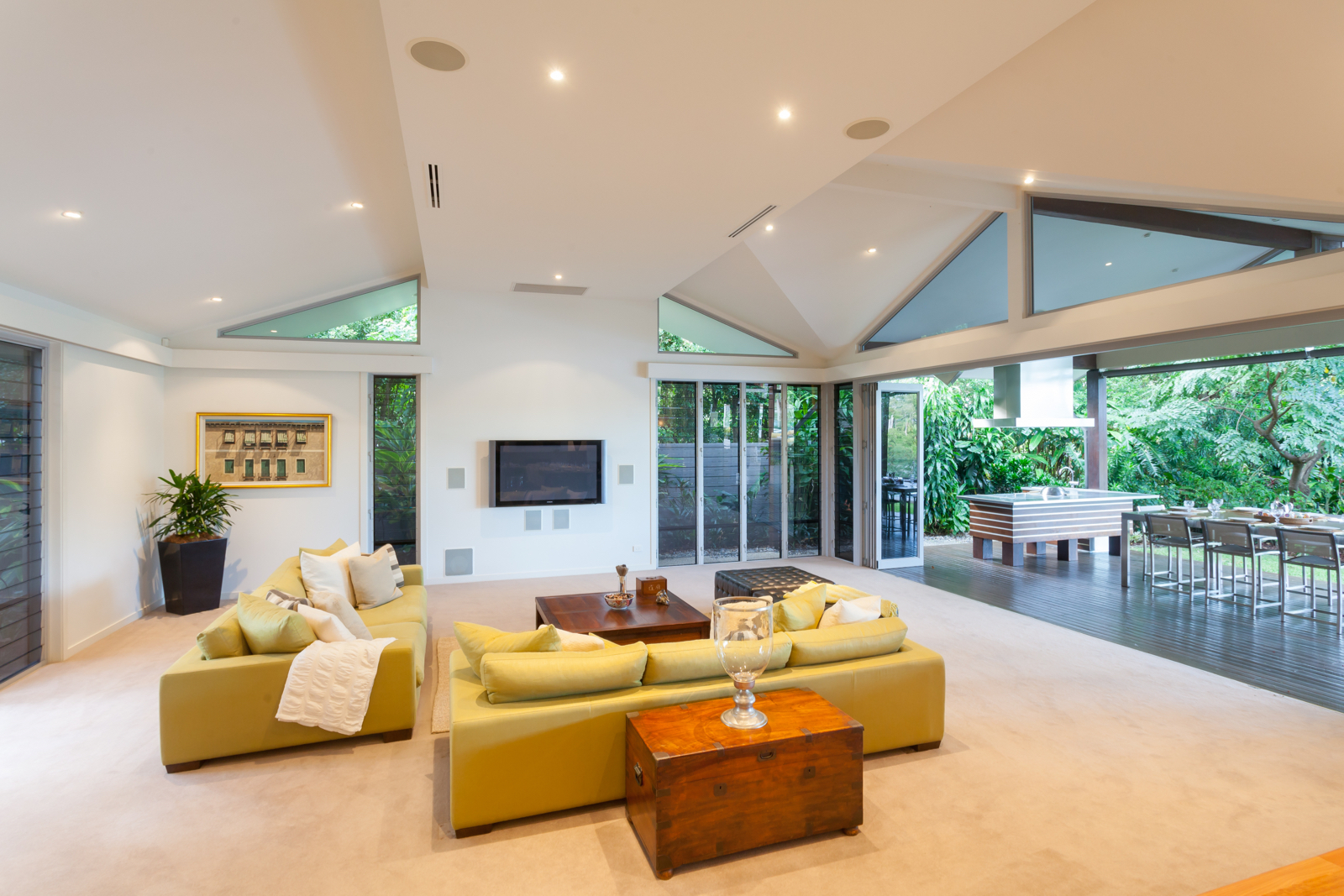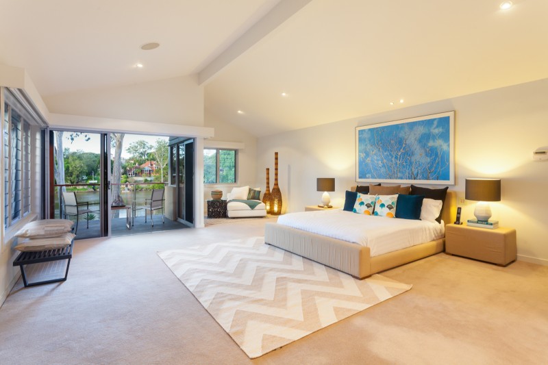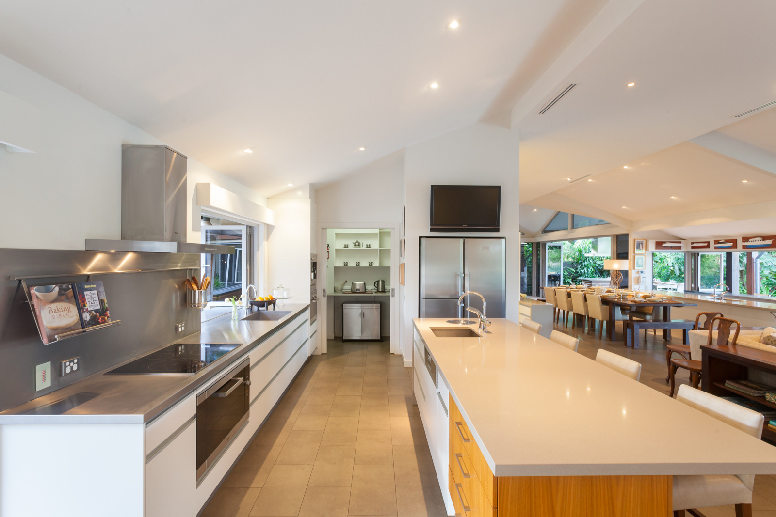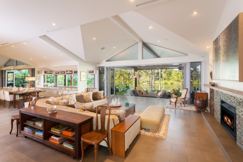 The open plan kitchen enjoys both a river and lake vista. Central to the design is a sprawling island bench; combined with a full complement of Miele appliances and a butler's pantry, the multiple catering configurations make entertaining a breeze. Myriad spaces for living and dining are situated throughout the home, each able to be used independently or utilised together for one grand and impressive entertainment zone.