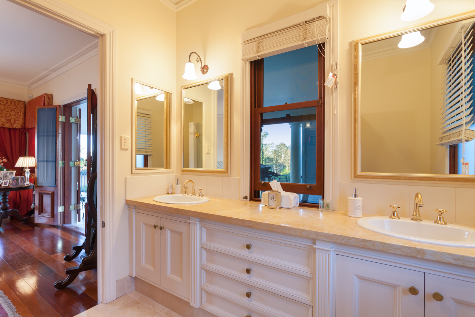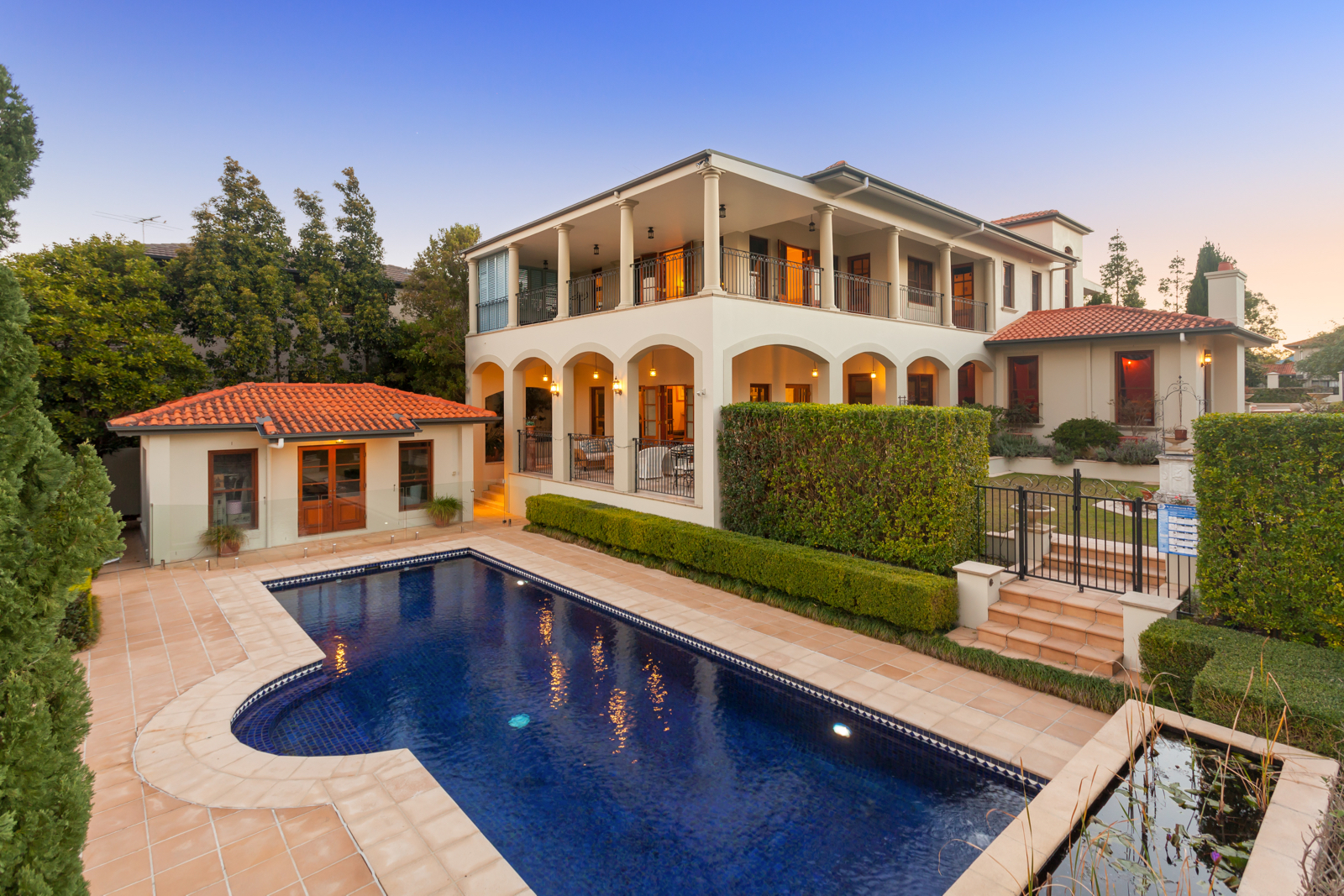 Upstairs, three large bedrooms all have water views, along with the use of a picturesque sitting room. The master suite also benefits from a walk-in wardrobe, private ensuite and access to a privatised section of balcony which is ideal for use as an alfresco lounge or workout area. A fourth bedroom (and third full bathroom), is positioned downstairs while the option of a separate guest suite can be found next to the pool in a free-standing pavilion that would also work well as a dedicated gym or home office. There is a study, air-conditioning, plentiful storage and a dual car garage with additional off-street parking for other vehicles.