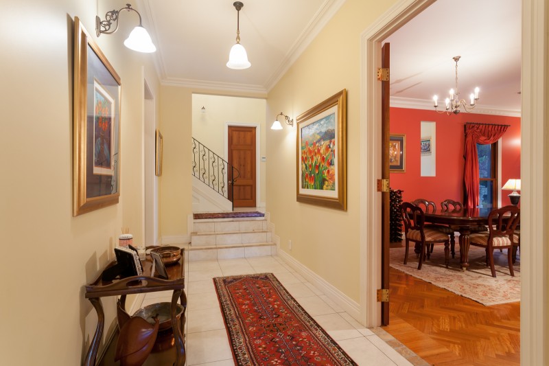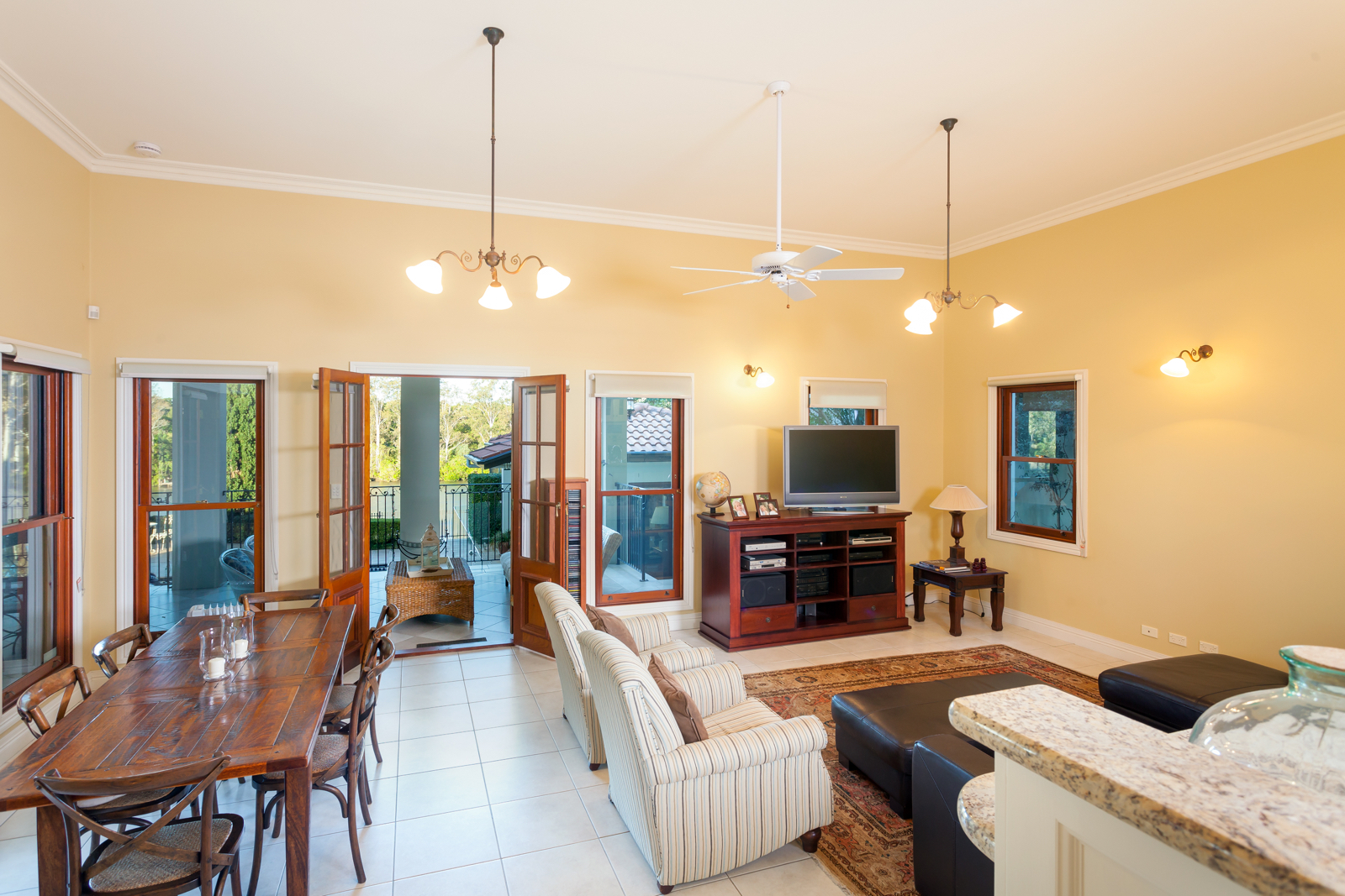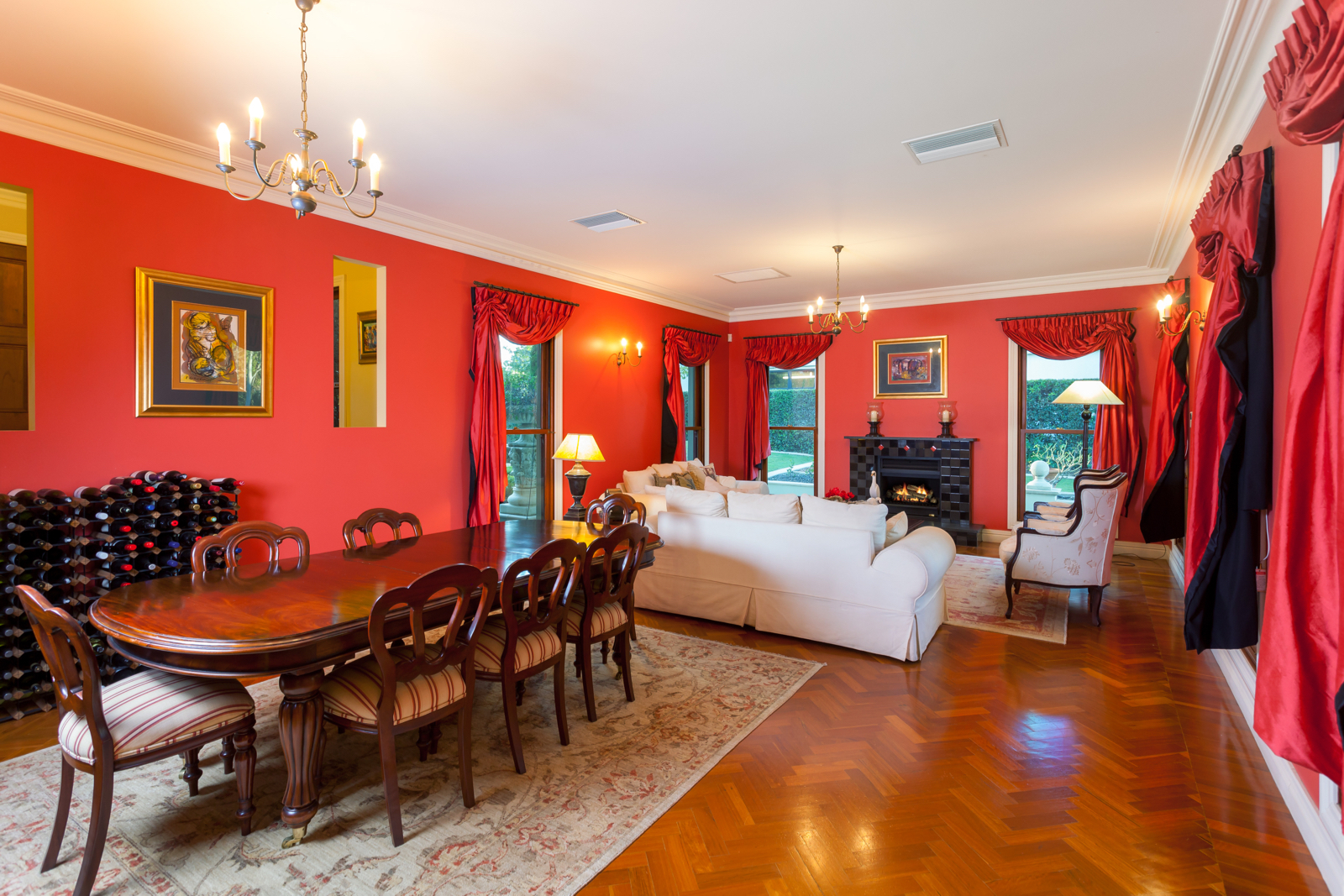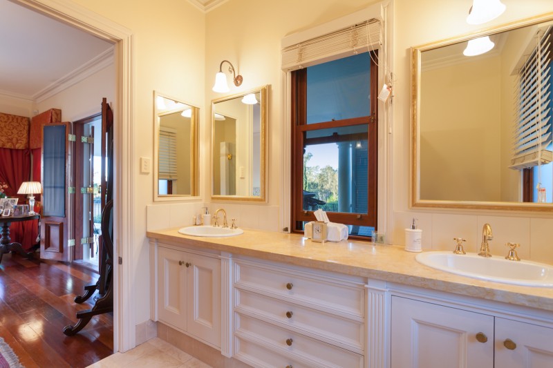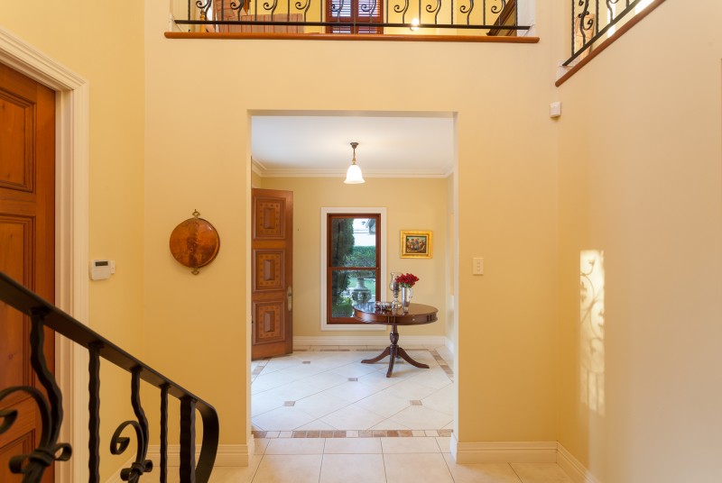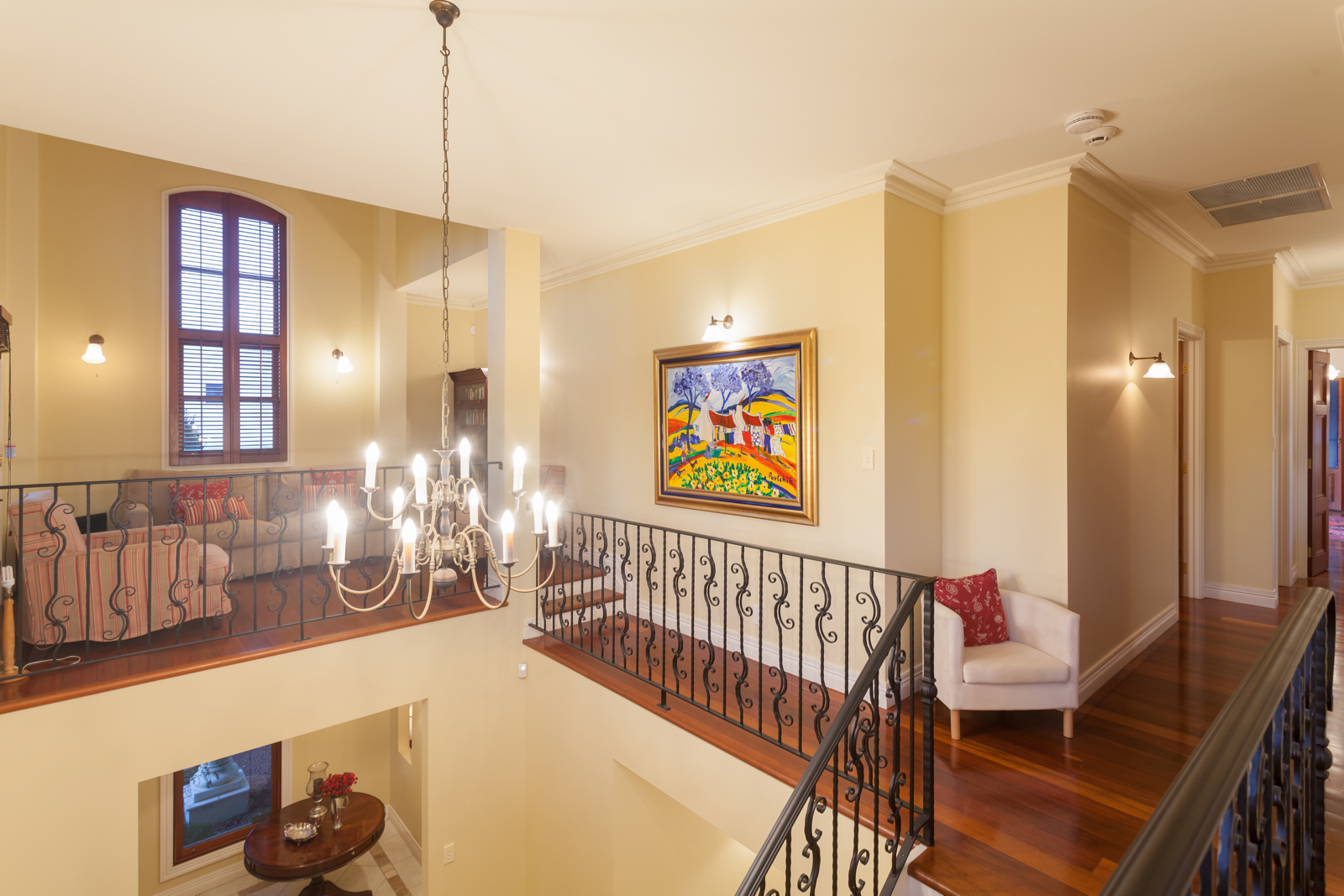 The entry is a suitably fitting affair with a formal foyer extending through to a dual level void where a staircase with handmade iron balustrading connects two spacious levels. A versatile configuration of rooms brings superior liveability to the ground floor with a casual space for living and dining surrounding the kitchen and then a secondary zone positioned just outside, within the expansive, porticoed terrace. Together, the two spaces bring superlative entertainment options, especially when the adjacent pool zone and extensive granite-topped kitchen are incorporated. A third living option comes in the form of the impressive 'Great Room', where an open fireplace and elegant finishes lends the space to more sedentary pursuits such as reading, music or as a media centre.