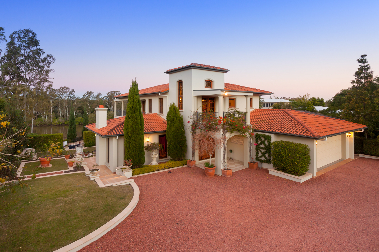 Bask in the timeless style and beauty of a flood free Modern Classic, with this executive riverfront abode that delivers relaxed family living and effortless entertainment options amidst elegantly appointed, private surrounds. Designed to honour the finest features of Mediterranean architecture and style, the home displays a strong connection with the outdoors, with a floorplan that effortlessly interacts with the surrounding alfresco spaces, water views and formal gardens.