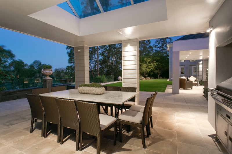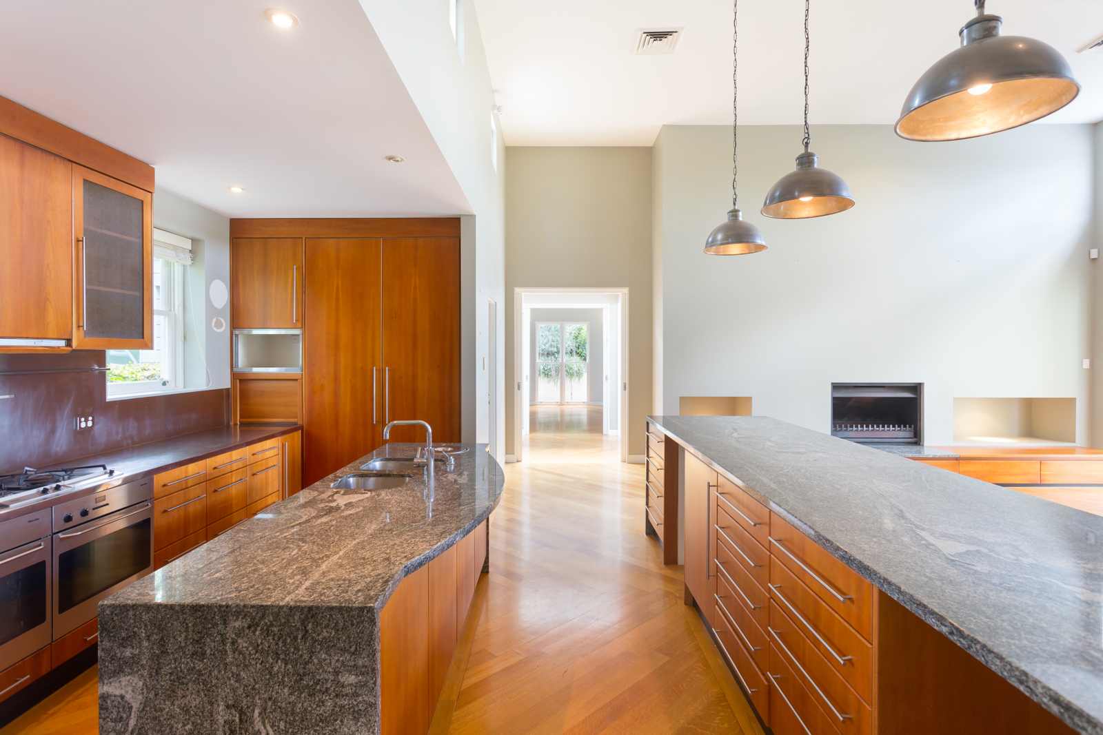 With a perfect North-easterly orientation, these features focus primarily on the horizon edge pool and the river beyond, with verdant scenes of mature specimen trees, rolling green lawns and immaculate gardens all playing a supporting role. Correspondingly, the great room showcases soaring ceilings, a fireplace and impressive glass panelling that allows the almost 1,000 bottles of the adjacent air conditioned wine cellar to be in full view. Ideal as a formal dining room capable of seating some twenty guests or as an expansive family lounge. More casual dining surrounds the kitchen which has been custom designed to showcase two granite topped island benches and quality appliances. A cosy sitting room is also located nearby, as is the beautifully appointed powder room. The alfresco lounge and dining areas can also be easily integrated into everyday living.