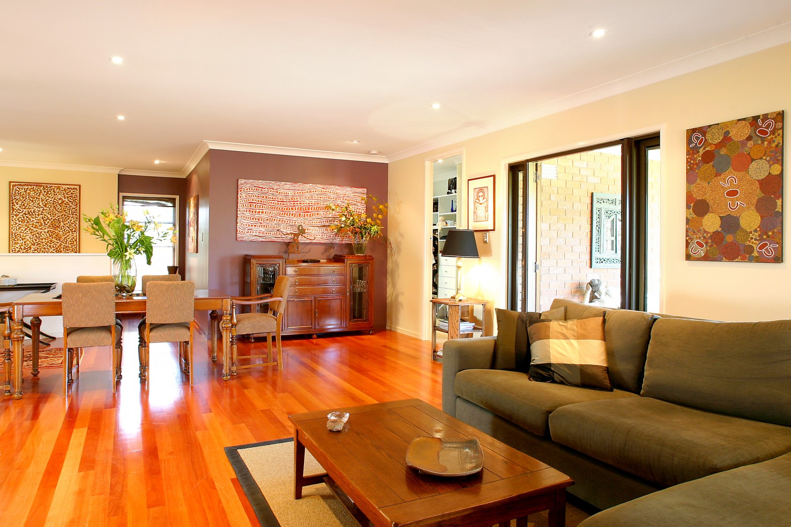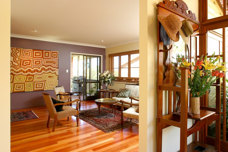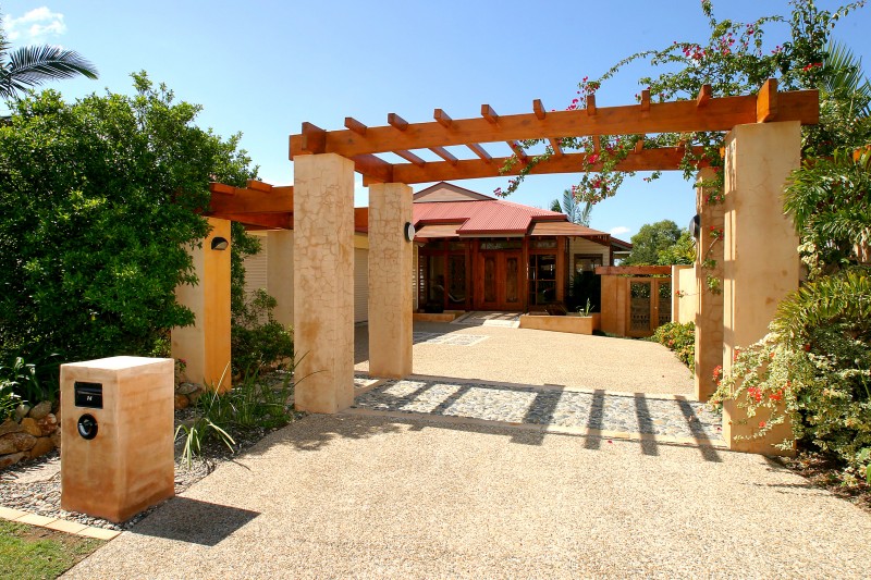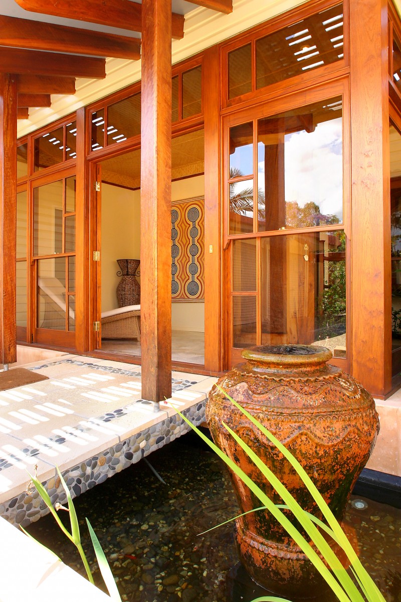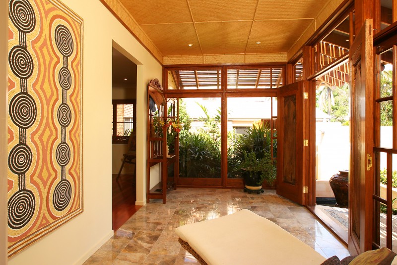 The impressive courtyard entry by bridge over a fishpond, past a water feature and through old Balinese doors into a marble foyer, sets the tone for the rest of this home.