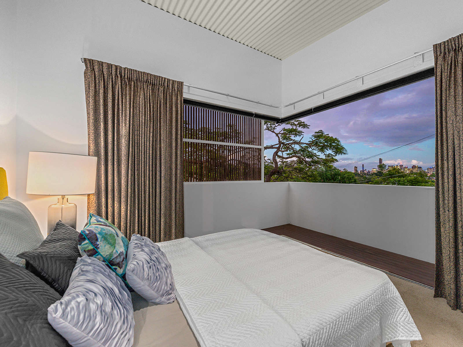 Stylish, modern and functional, this architecturally designed home(Recently refreshed) is perched on top of a hill with city views in one of Brisbane's most prestigious suburbs. It is easy to see why this four bedroom, three bathroom family home was a finalist in the 2008 Design Institute of Australia's QDS Awards. Its impressive 22m street frontage is achieved with a contemporary house design, skillion roof, modern landscaping, grand front entrance and welcoming greenery.