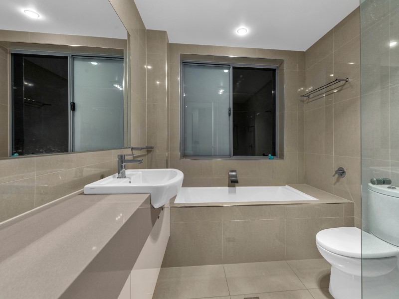 The master suite is a luxurious retreat of epic proportions with its impressive double height ceilings and dressing room. Its stylish, tranquil ensuite features floor to ceiling tiles, island bath, twin vanities and a luxurious built-in dressing table that combine to create the atmosphere of a deluxe day spa.