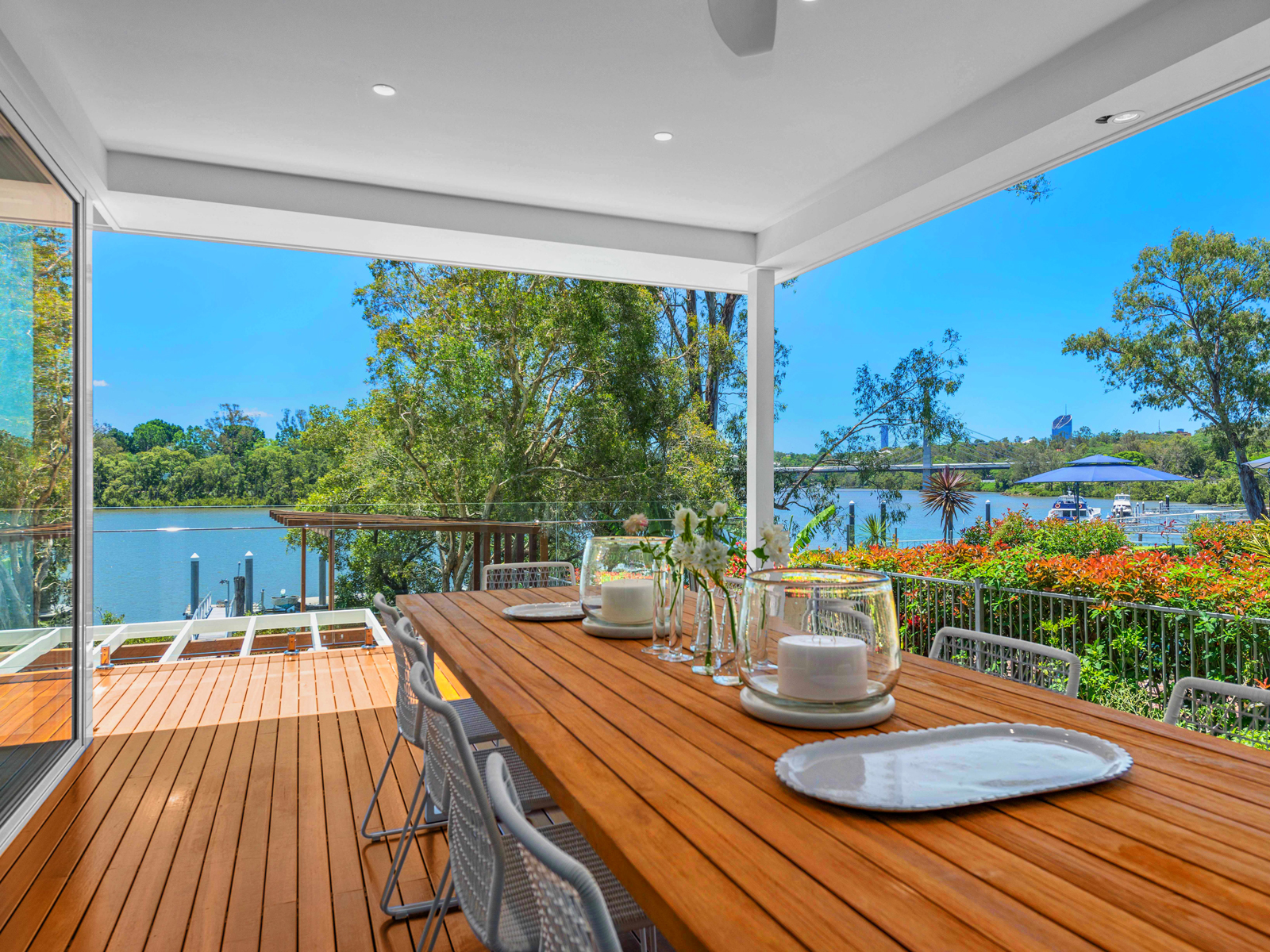 Set upon 850m2 of absolute riverfront land, the property's outdoor areas are green, lush and stylish. The fully landscaped backyard and gardens overlook the river while a separate ironbark timber patio within the gardens is an enchanting hideaway. Wander down to the water to your own personal jetty offering endless possibilities to enjoy everything riverside living has to offer. With work, lifestyle and cultural offerings at your fingertips, the home is also just 10 minutes to the University of Queensland across the Eleanor Schonell bridge.