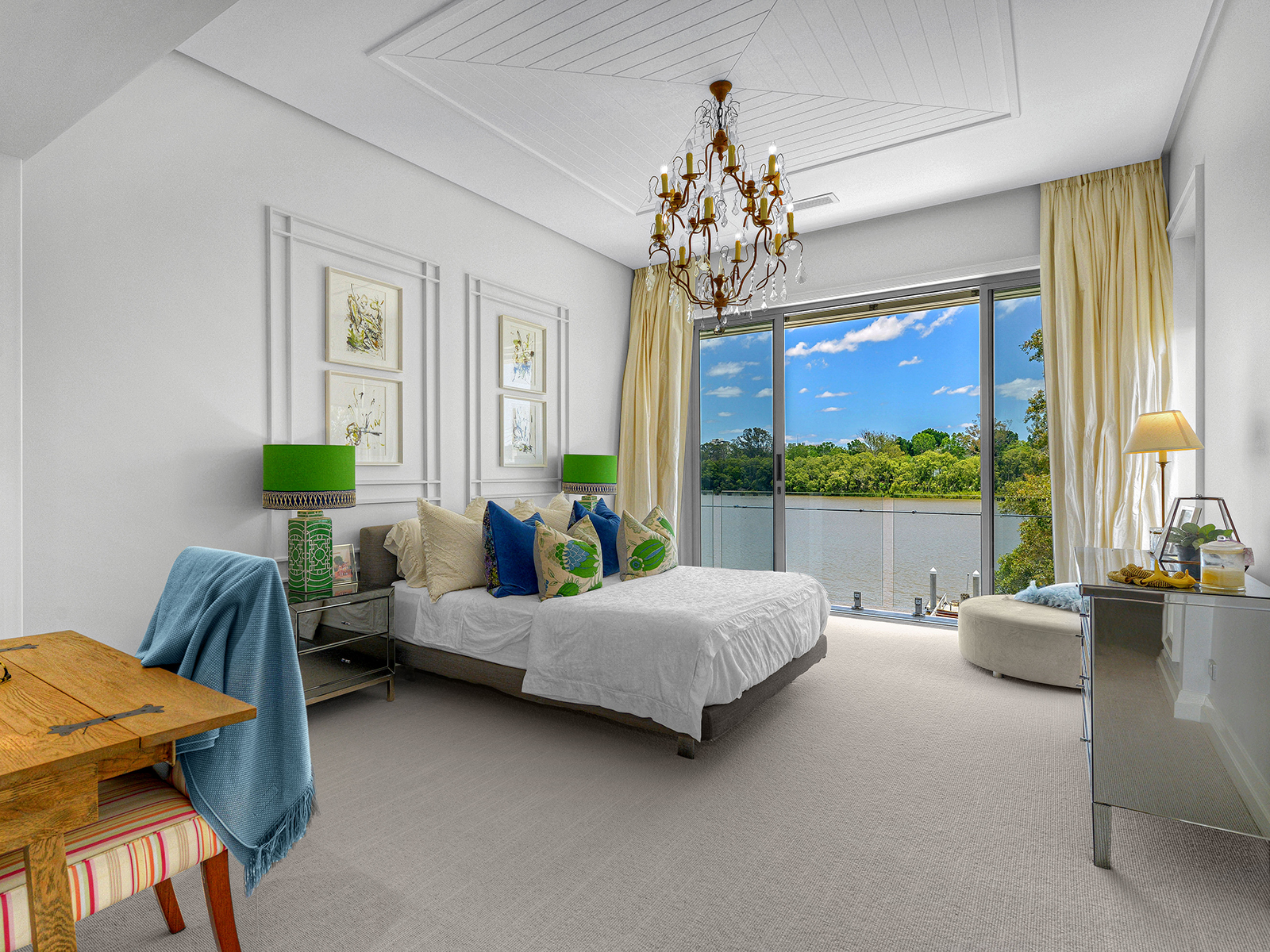 The master bedroom is a grand affair, with 12 foot ceilings enhancing the sense of space and luxury. Draw back billowing curtains to reveal breathtaking riverside views and enjoy features including individual climate controlled air-conditioning, imported Ralph Lauren pendant light, built-in dressing table, floating entertainment unit and soft premium carpet underfoot. It doesn't end there. The Italian walk-in-robe system with laminated joinery is dressing room heaven, while the ensuite is a tranquil designer retreat in which to replenish and refresh. Additional bedrooms also include individual air-conditioning and delightful features such as deluxe wallpaper and chandeliers. Even the staircase, powder room and laundry have been given the designer treatment. The staircase includes Carrara marble treads and landing, toughened frameless glass balustrades and ornate wall inlays. The powder room includes premium wallpaper, Parisi toilet bowl, Geberit concealed cistern and Lee Brown crystal pendants. Like the laundry, it also includes Carrara marble floors and walls. Other valuable features include ducted air-conditioning throughout the living spaces and extensive thermal insulation to walls and ceilings, custom skirtings and architraves, automated sliding front gate, automated garden watering system, electric remote control external shutters, gas instantaneous hot water system, solar energy collectors, video security and intercom system, alarm system, fibre optic high speed internet and "Cat 6" data cabling.