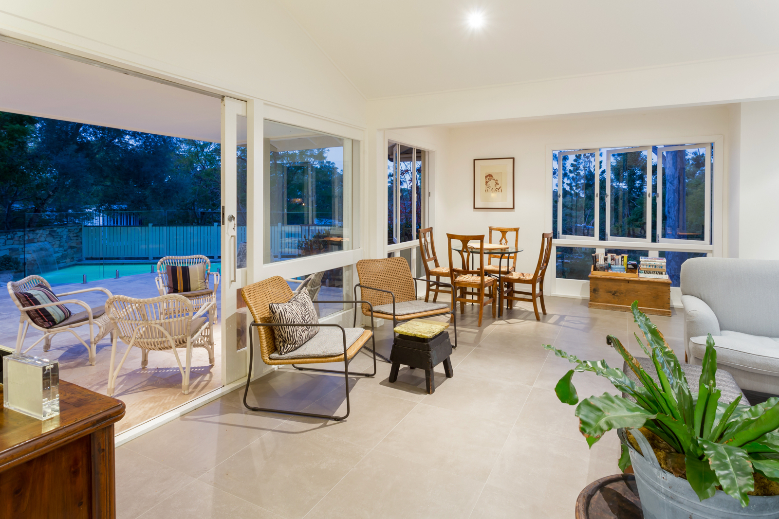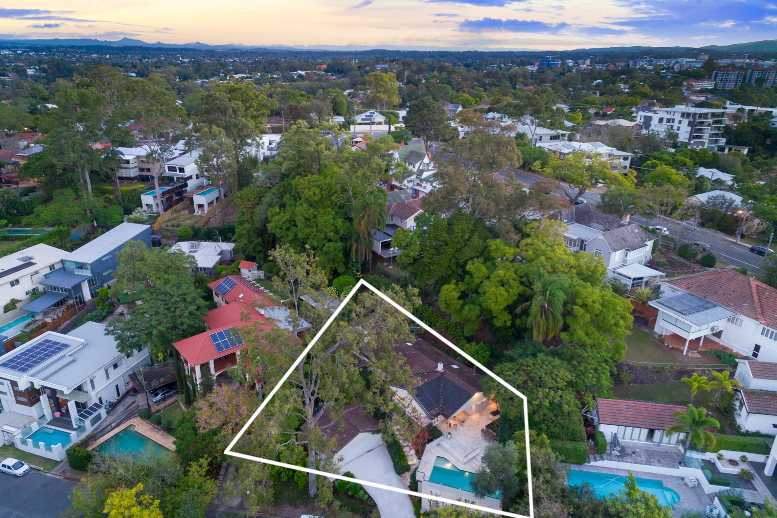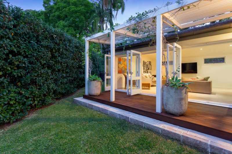 This charming renovated family home spanning over one tastefully appointed level is surrounded by beautiful gardens with dramatic reserve views in leafy St Lucia. Situated over two lots measuring 982m2 with a 30m frontage, it looks as though it has been lifted straight from the pages of a storybook. Make your way up the outdoor Sydney-sandstone stairs surrounded by luscious greenery and hedgerows to the long front timber deck. Enjoy the sun-soaked due north aspect of this quality Griffin & Knowlman home renovated in 2011, which opens into the large and welcoming main living rooms with impressive high ceilings and oversized windows allowing an abundance of natural light to pour into the space. Wide glass sliding doors open onto the patio with sandstone pavers overlooking the stunning pool through modern frameless glass fencing.