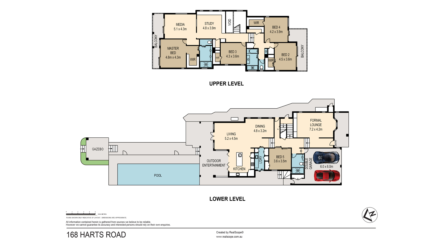 On the upper level, extra large bedrooms with walk-in-robes provide plenty of opportunity for family members to escape to their own private space. A spacious study and separate media room provide flexibility of living and can be used for a variety of purposes as shared areas to come together once more. The large master bedroom opens onto the balcony overlooking the leafy backyard and also features a spacious walk-in-robe and luxurious ensuite with twin vanity and double shower. Other features include ducted air-conditioning, security alarm system, a 22,000L in-ground irrigation tank system, outdoor blinds, heated towel rails, modern laundry with drying area and outdoor shower, plenty of storage throughout, floor tiles in the main living areas and carpets in the bedrooms and second living and dining, two car remote lock up garage, Vacumaid, front windows with double glazing and UV protection and loft storage with pull-down ladder.