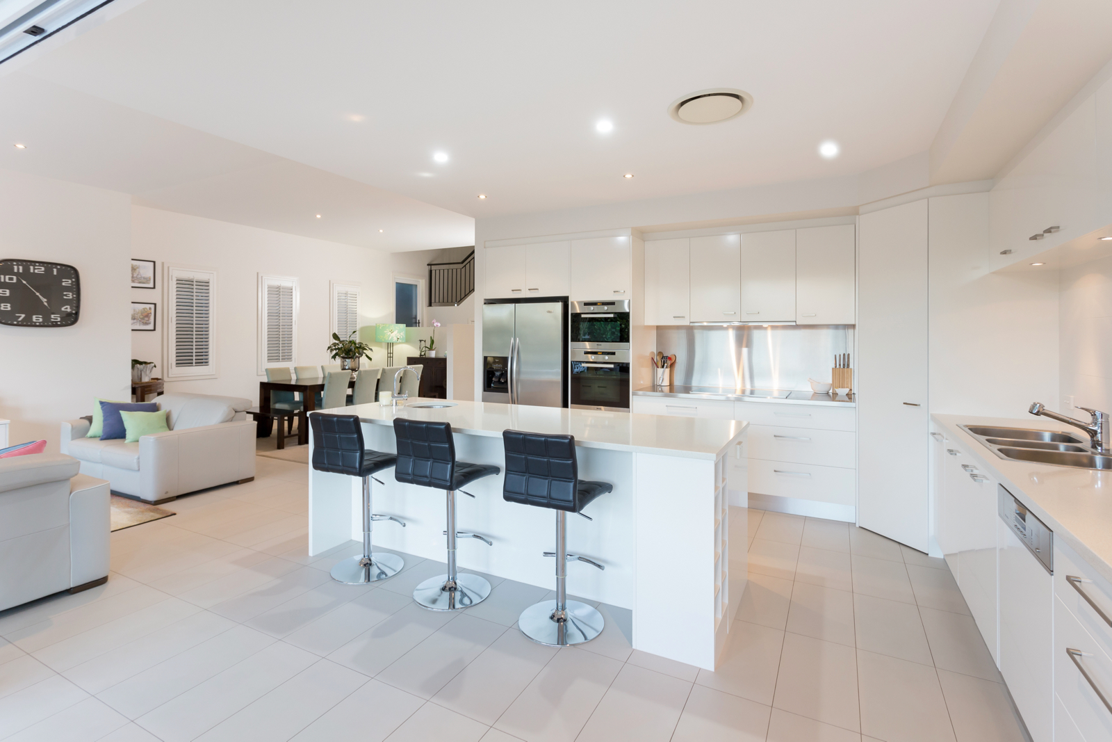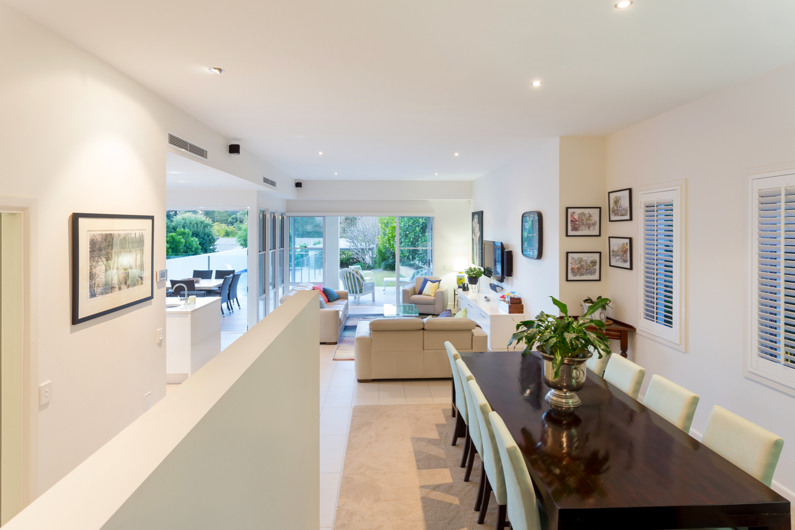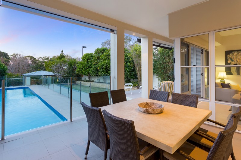 Arrive at the gated front entrance and make your way to the front door opening into the long entry hall that provides a view straight through to the leafy back gardens. This exclusive home has been beautifully and thoughtfully designed to suit families and embraces the indoor/outdoor lifestyle offered by our warm climate. The open plan kitchen and living rooms feature high ceilings and are flooded with natural light from large windows and bifold doors that open onto the undercover outdoor areas. These overlook the backyard and the stunning 13.5m x 3.5m lap pool behind glass pool fencing for full visibility with three beautiful water features. A gazebo surrounded by beautiful trees and greenery provides a lovely focal point in the distance further down the backyard while an open timber deck at the back of the property provides the perfect spot for family and friends to gather. There is also a large and level lawn great for kicking a ball around or playing cricket in the afternoon. The classic kitchen is an entertainer's delight and features quality Miele appliances including wall ovens, large induction cooktop, stone and stainless steel benchtops, large island bench with bar seating and sink, separate double sink and ample storage space. A second living room or formal lounge on the ground floor is yet another space to relax and unwind and overlooks the lovely front gardens through a charming bay window.