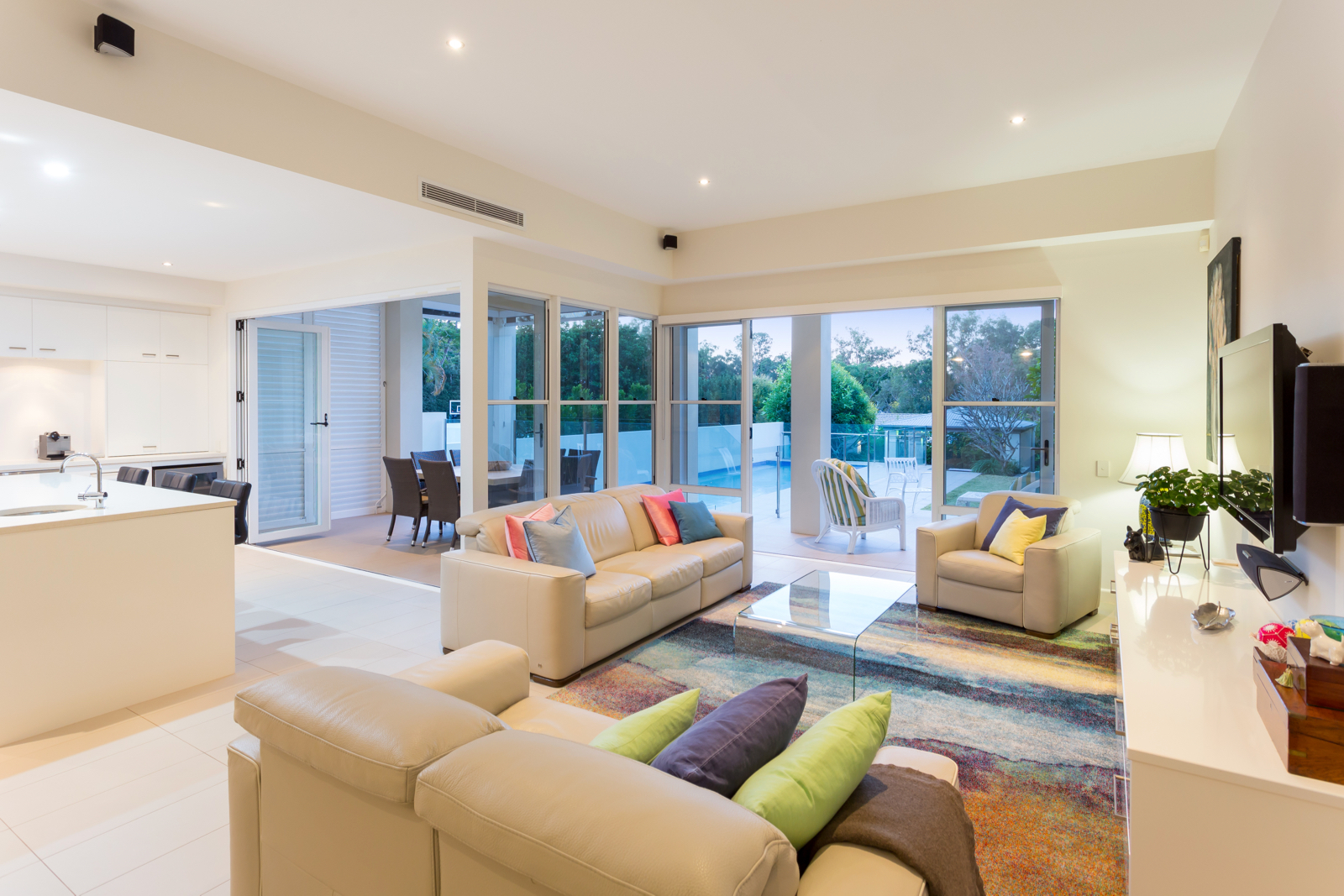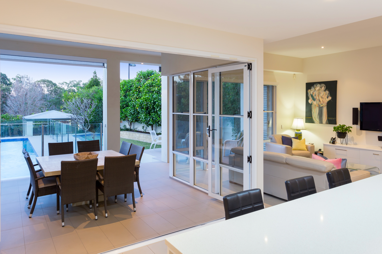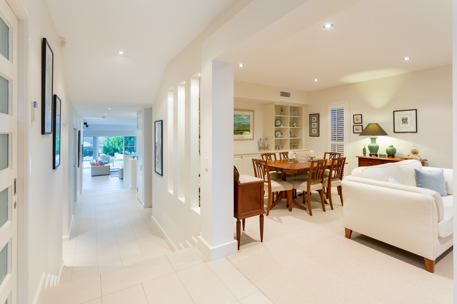 Arrive at the gated front entrance and make your way to the front door opening into the long entry hall that provides a view straight through to the leafy back gardens. This exclusive home has been beautifully and thoughtfully designed to suit families and embraces the indoor/outdoor lifestyle offered by our warm climate. The open plan kitchen and living rooms feature high ceilings and are flooded with natural light from large windows and bifold doors that open onto the undercover outdoor areas. These overlook the backyard and the stunning 13.5m x 3.5m lap pool behind glass pool fencing for full visibility with three beautiful water features. A gazebo surrounded by beautiful trees and greenery provides a lovely focal point in the distance further down the backyard while an open timber deck at the back of the property provides the perfect spot for family and friends to gather. There is also a large and level lawn great for kicking a ball around or playing cricket in the afternoon. The classic kitchen is an entertainer's delight and features quality Miele appliances including wall ovens, large induction cooktop, stone and stainless steel benchtops, large island bench with bar seating and sink, separate double sink and ample storage space. A second living room or formal lounge on the ground floor is yet another space to relax and unwind and overlooks the lovely front gardens through a charming bay window.