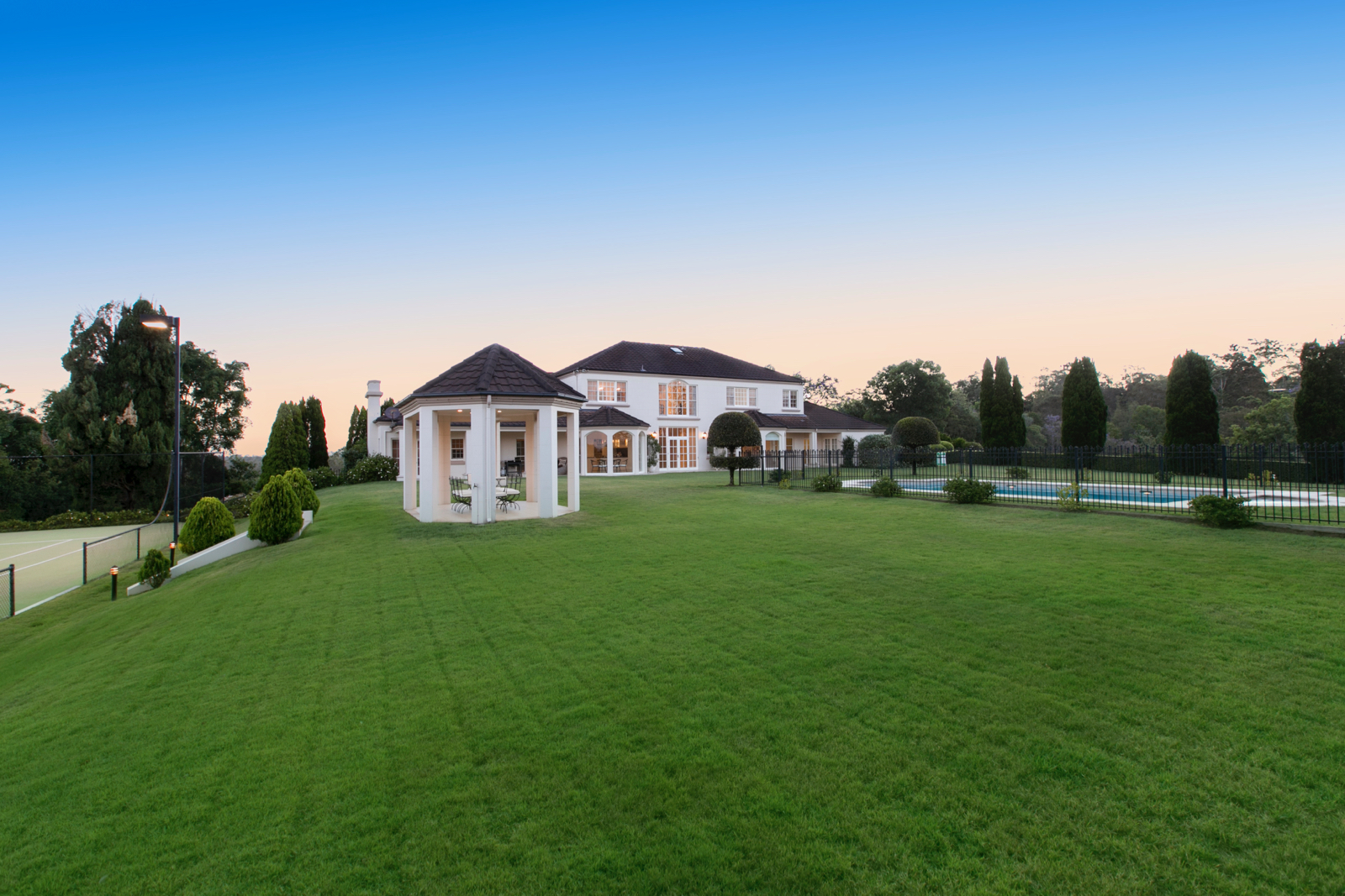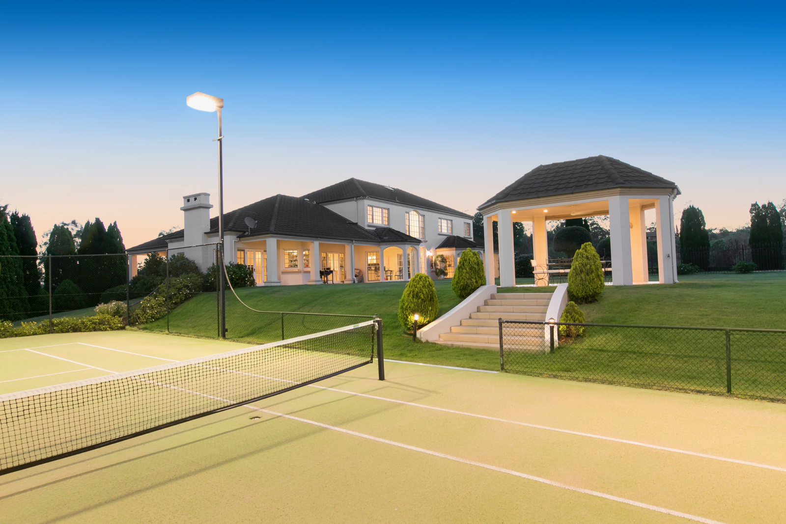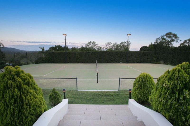 - Flood lit tennis court and private pavilion