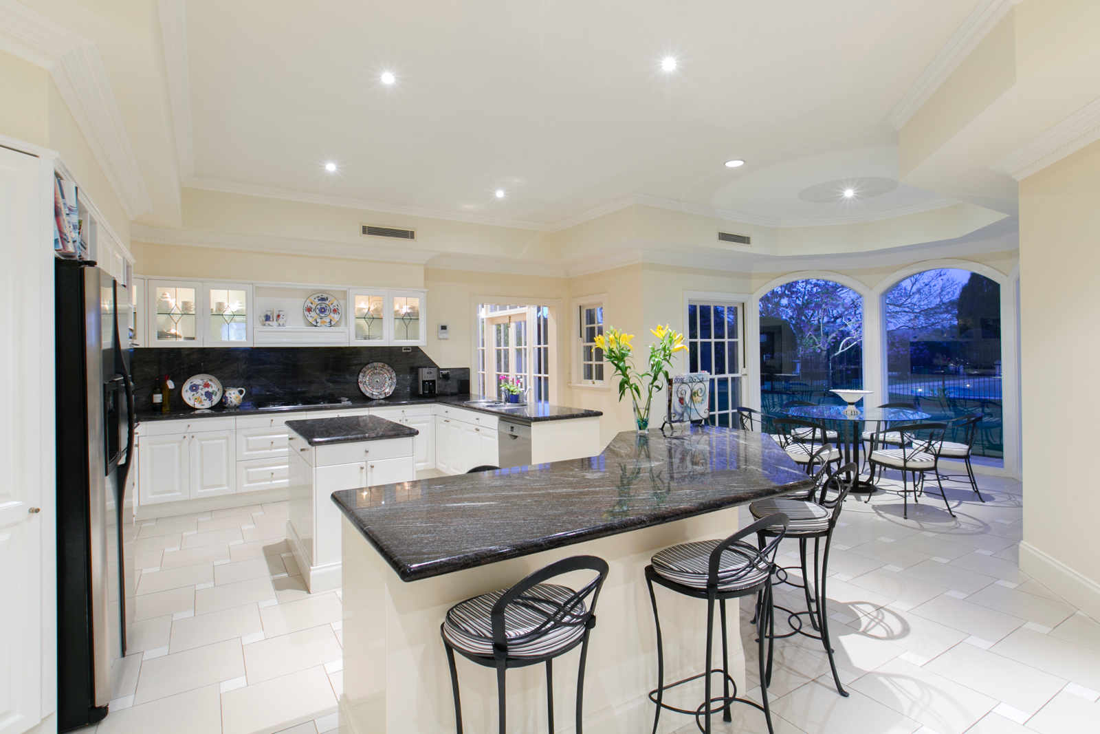 - Gourmet kitchen overlooking the pool, tennis court and views to the North