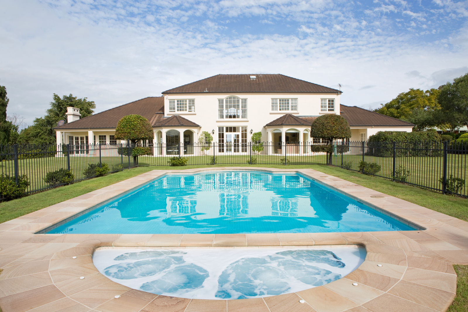 - In ground swimming pool surrounded by lashings of sandstone