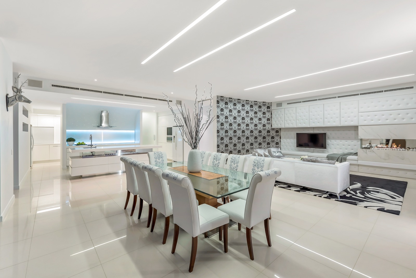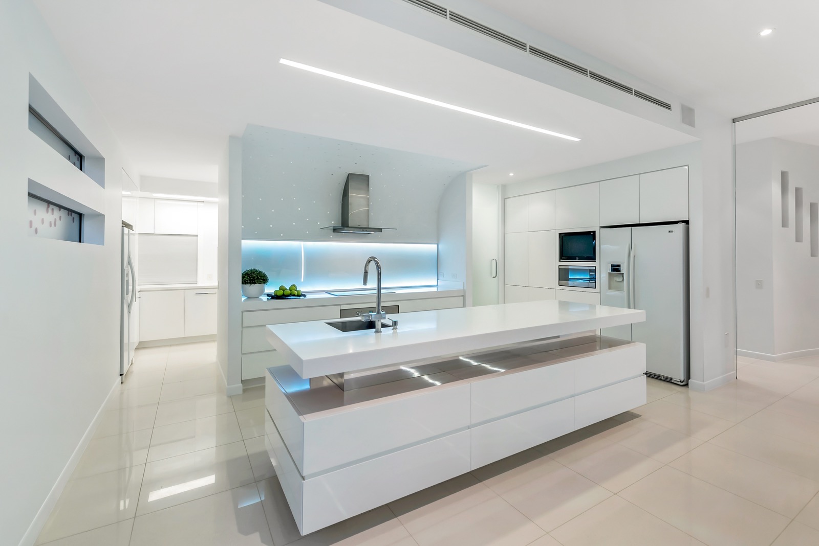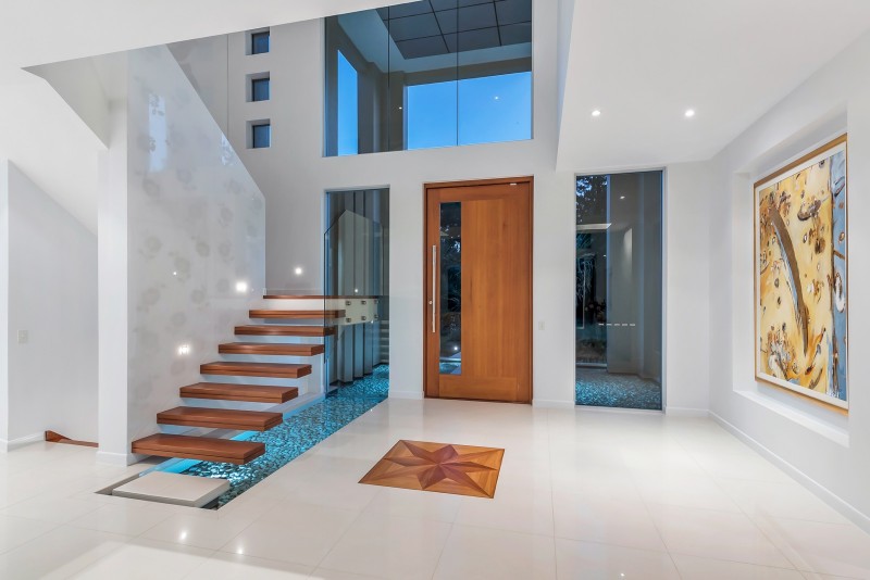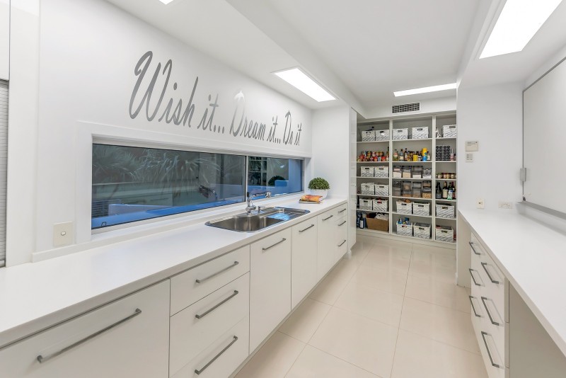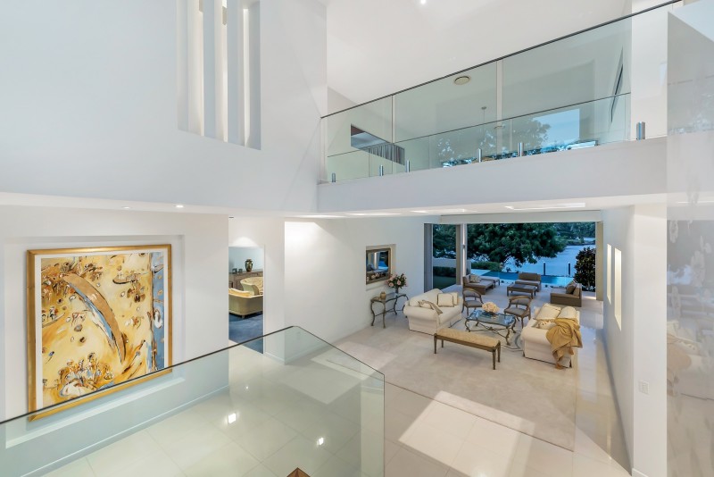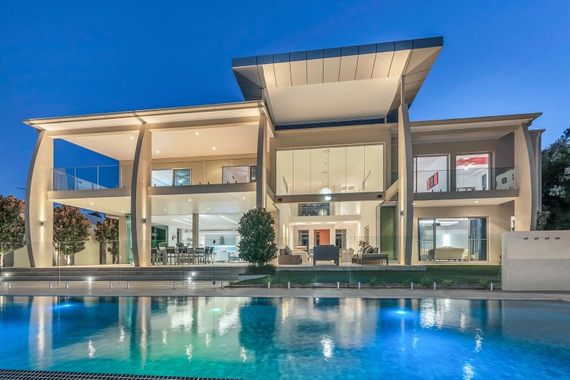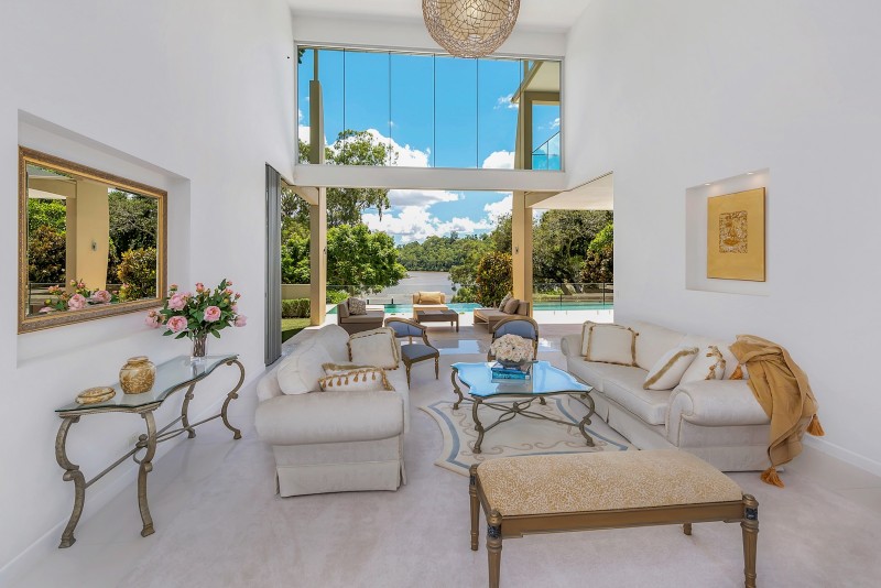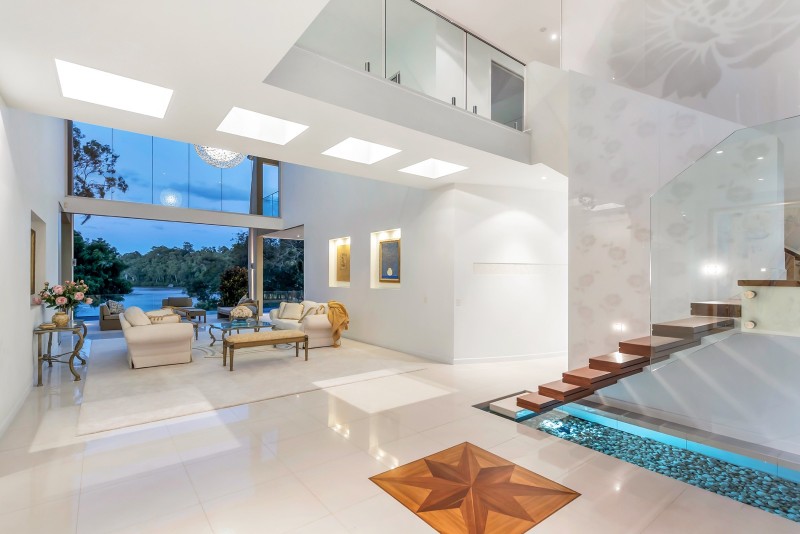 Distinctive water features embrace the striking entranceway; entree to the breathtaking river spectacle beyond which is framed by soaring ceilings and a prolific use of glass. Equally grand open plan living, dining and kitchen areas share in the omnipresence of light and space taking full advantage of the stunning river panorama and prevailing breezes. The purpose designed gourmet kitchen makes entertaining a stylish delight with its socially inclusive, long bar island bench, quality appliances, and massive walk through butler's pantry and scullery.