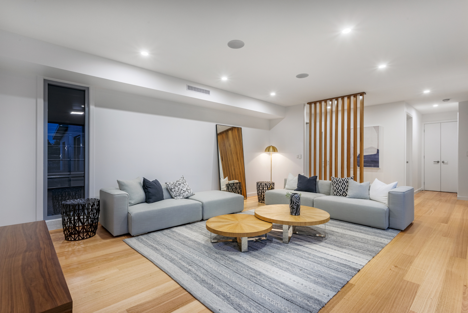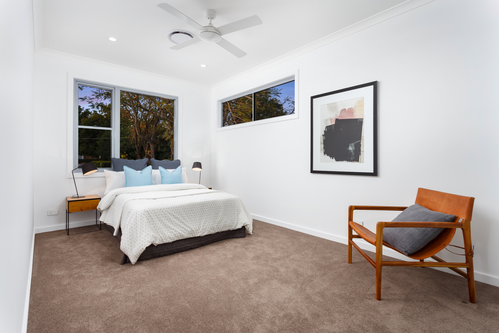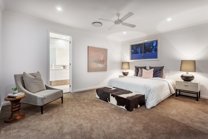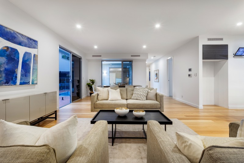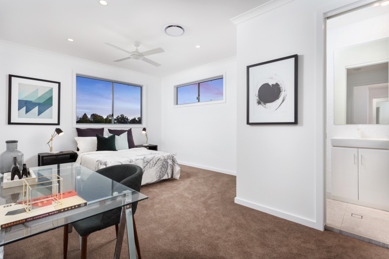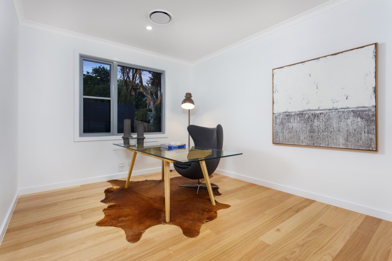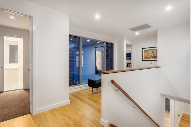 Light-filled accommodation upstairs comprises a beautiful main bedroom with lavish walk in robe and designer ensuite, additional double bedrooms with built in robes and an ultra-stylish bathroom.