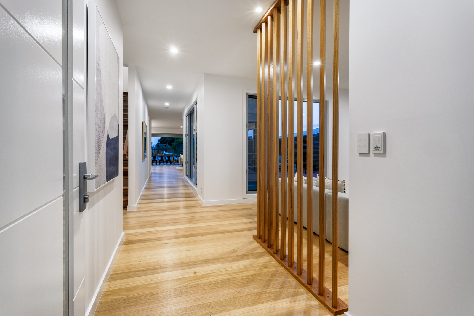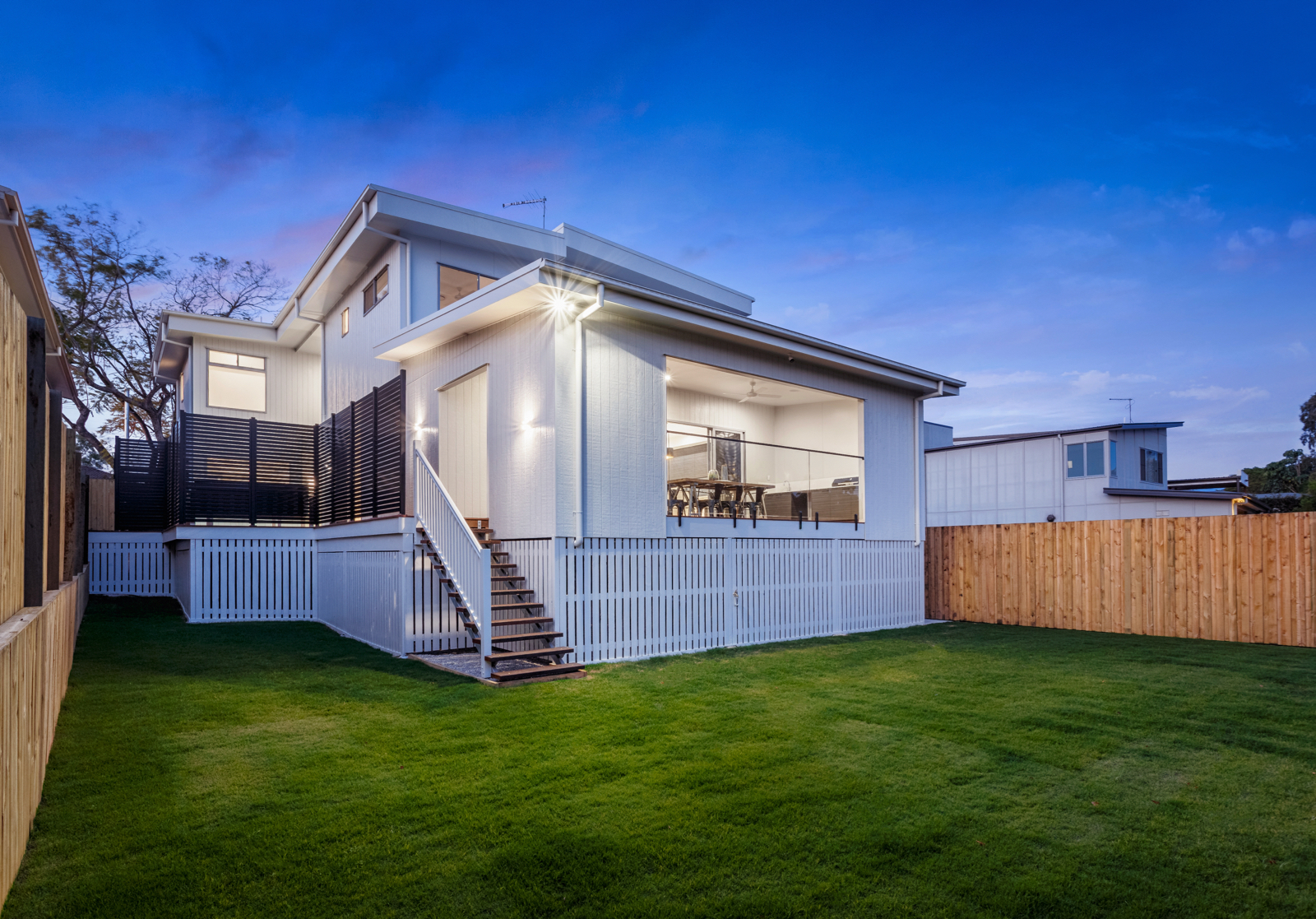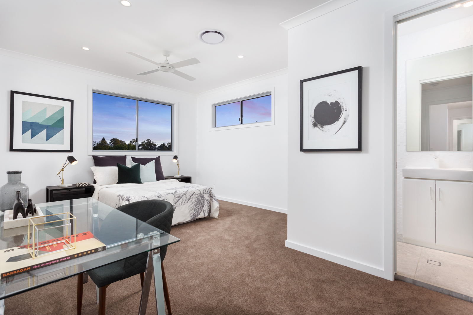 Light-filled accommodation upstairs comprises a beautiful main bedroom with lavish walk in robe and designer ensuite, additional double bedrooms with built in robes and an ultra-stylish bathroom.