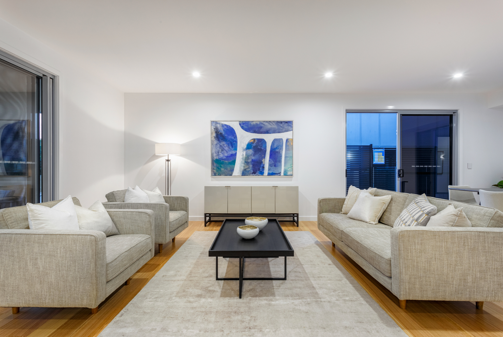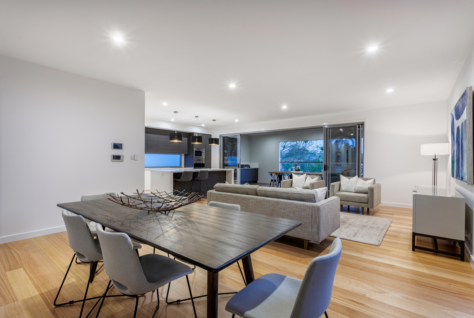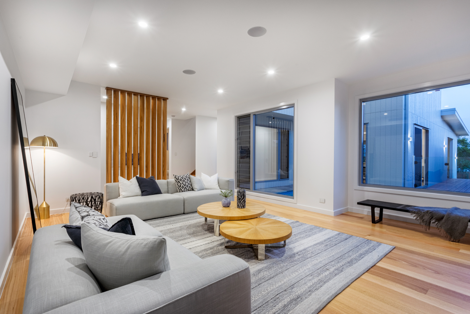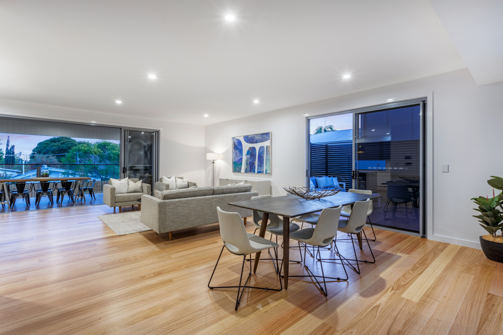 Light-filled accommodation upstairs comprises a beautiful main bedroom with lavish walk in robe and designer ensuite, additional double bedrooms with built in robes and an ultra-stylish bathroom.