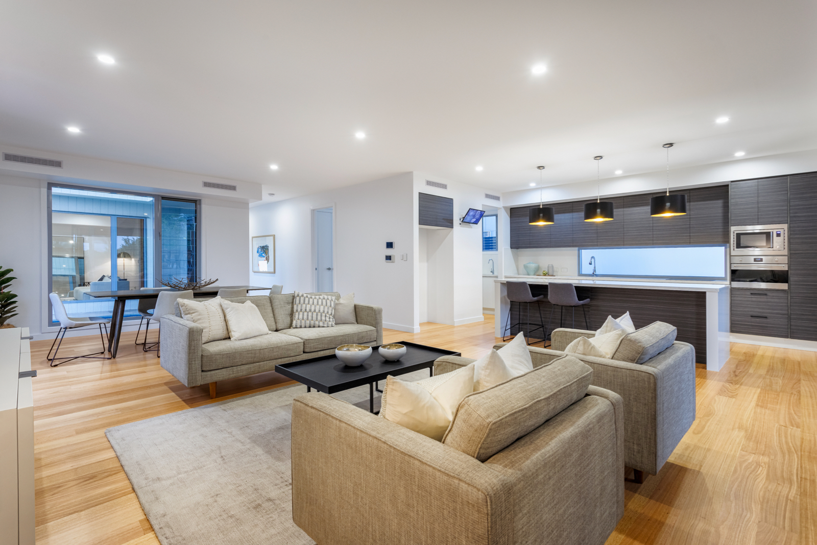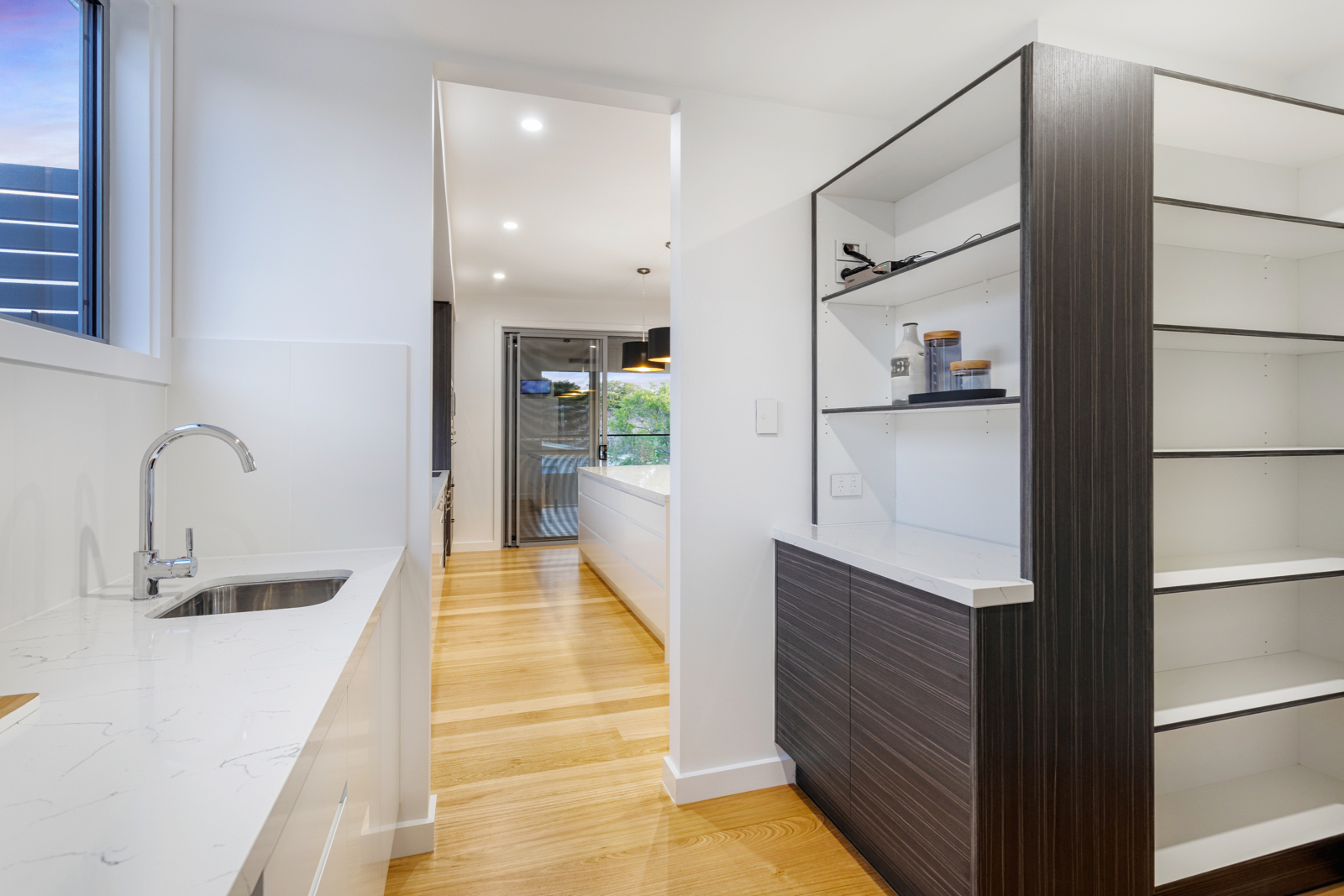The ground floor seamlessly transitions from a state-of-the-art gourmet kitchen, with an amazing butler's pantry providing a fabulous preparation area for entertaining and hosts a faultless fit out and comprehensive storage, taking you out to the living and dining room onto a private under cover patio overlooking the fully fenced back yard.