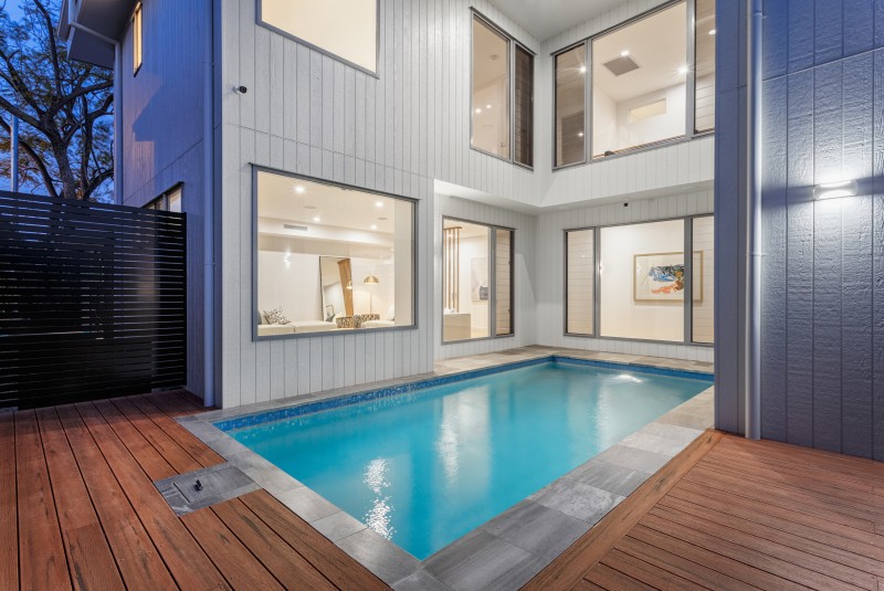 Behind a private forecourt, an impressive door reveals high ceilings and wide southern beech floors, glass louvers add a touch of beach house feel, while the pool forms a pleasant backdrop. Expansive in scale, the sensational living and dining room showcase premium finishes, innovative designer style and impressive proportions, this architecturally designed residence sets a new benchmark in low maintenance luxury just moments from Brisbane International Tennis Centre, Yeerongpilly Green Development and a selection of public transport.
