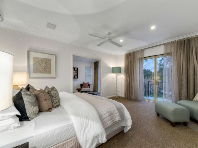 In a separate wing, a media room/children's play room and study work together as a great space for kids, set apart as they are, from the rest of the home. There is also a majestic formal room fitted with an atmospheric fireplace, which provisions for both living and dining opportunities. This formal room flows out to a picturesque loggia that delivers a stunning option for alfresco dining - complete with a water fountain and river breezes. Upstairs each of the four bedrooms have been configured to offer balcony access and river views. Three children's bedrooms have built in wardrobes and shared use of the three-way family bathroom. The main bedroom meanwhile, offers an expansive layout of an ensuite and walk-in wardrobe as well as an adjacent room (ideal for use as a studio, nursery or library), which can be closed off or integrated into the design as desired. Capacious storage facilities are on display throughout each level, along with air-conditioning, ducted sound, a ducted vacuum system and security. Additionally, the home has garaging for two vehicles, a powder room and an in-built wine storage facility positioned within the study. Outside, the perfectly maintained 1847m2 grounds incorporate tidy lawns and gardens, a majestic olive tree and the salt water pool.