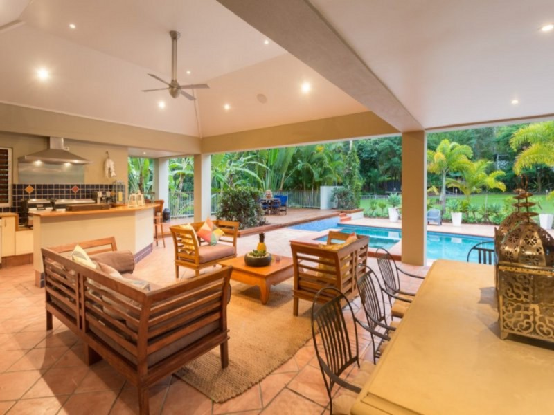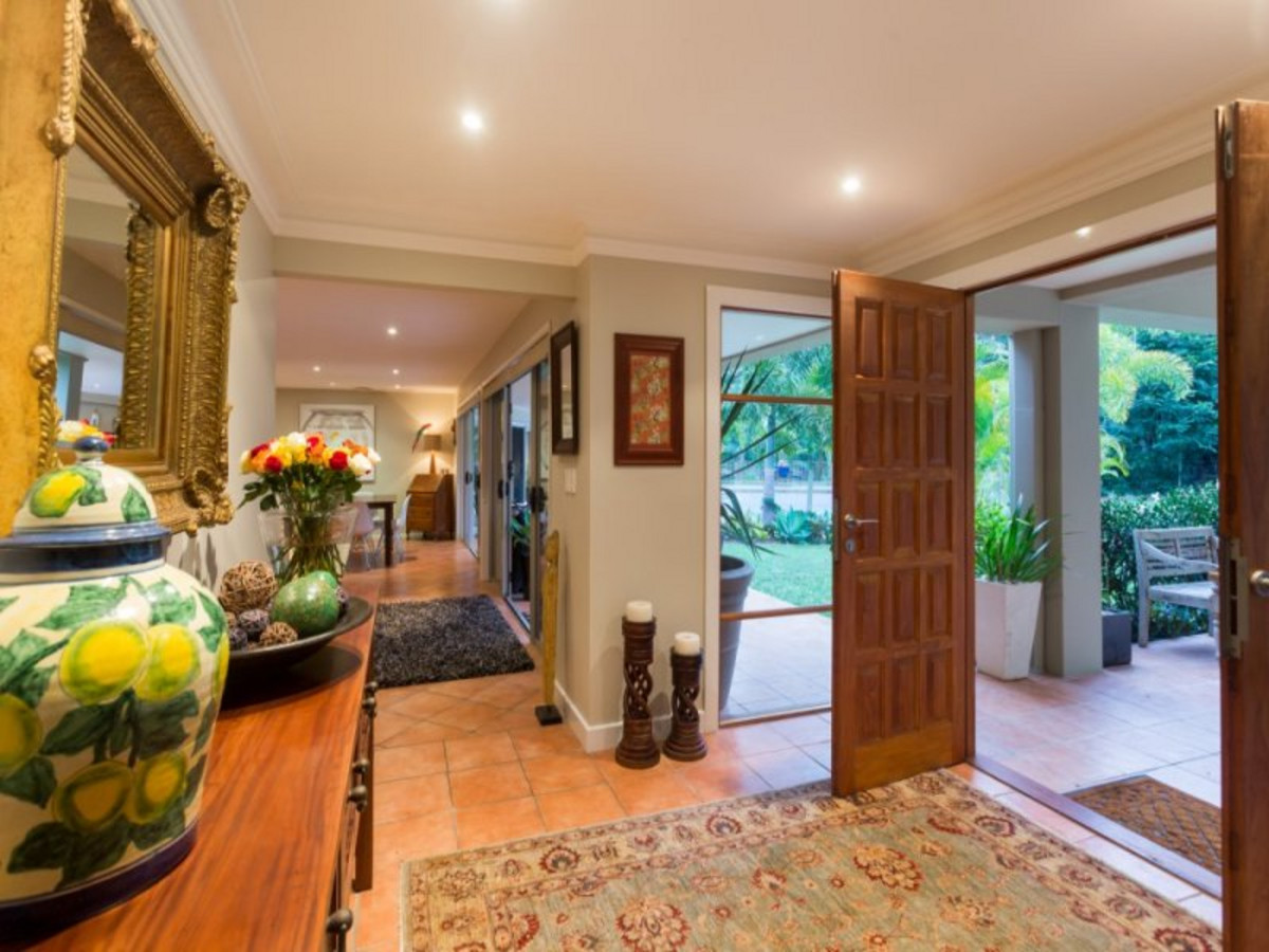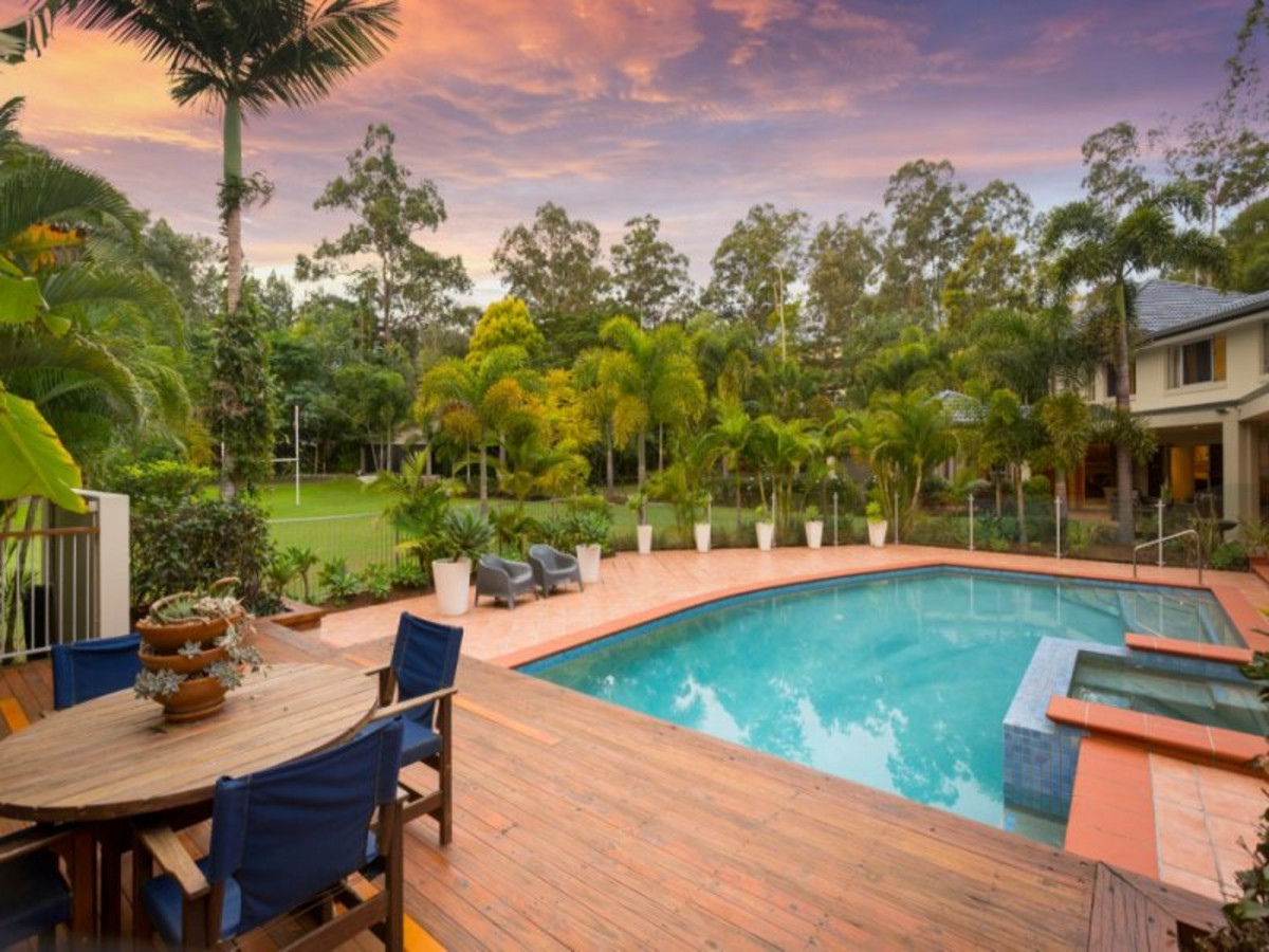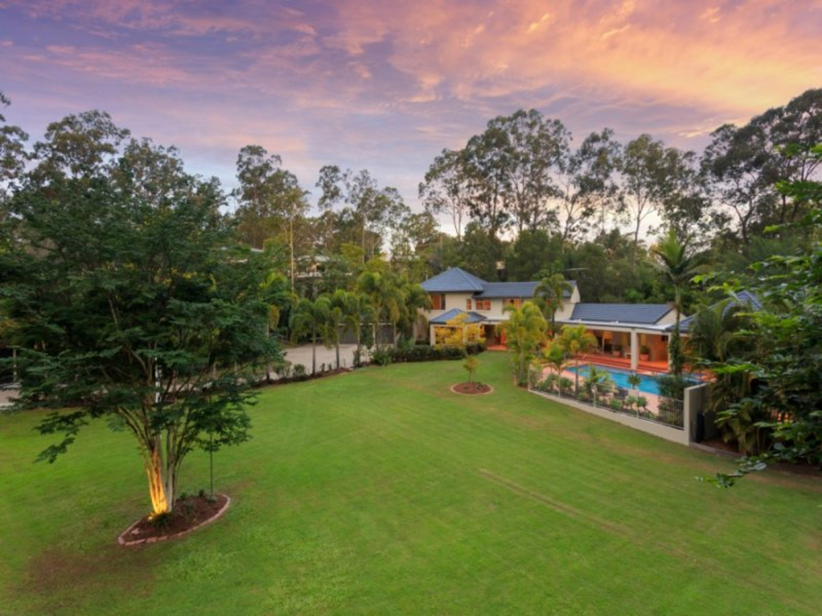 On the upper floor, the master suite is well suited to a home of this standing, with its grand proportions providing space for a walk-in wardrobe and an ensuite (complete with impressive walk-in shower). An additional four double bedrooms are also on hand - three with built-in wardrobes and shared use of the family bathroom and a fourth ensuited room with walk-in wardrobe facilities. There is ducted air-conditioning, an alarm system, a fully automated sprinkler system, integrated sound and Crimsafe screens. Outside, the combination of a long driveway and extensive gardens delivers a high level of seclusion to this estate, with the beautifully maintained grounds also a pleasure to walk through. Not only do they feature well-established sub-tropical plantings and immaculate lawns, but also a vegetable patch, a chicken coop (with chickens), a fruit grove and a large play area complete with a play fort and a double shed.