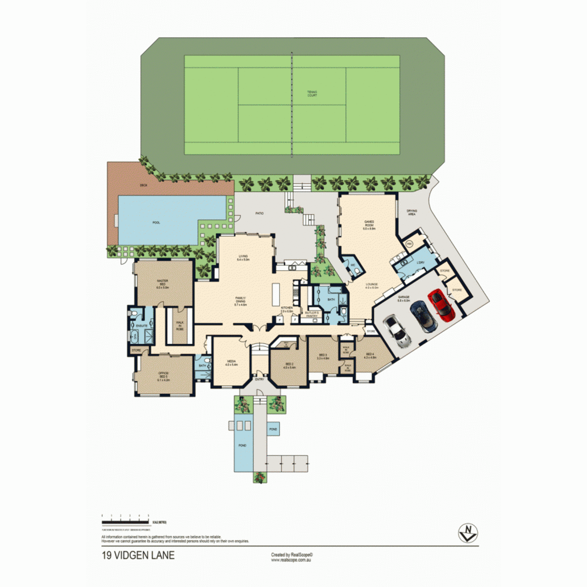 Within the floor plan, four double bedrooms have been separated into two entirely separate wings, delivering space and a high level of privacy. Within the poolside master suite, truly capacious proportions yet again allow for the incorporation of a range of premier features - a spa bath within the ensuite as well as space for a chaise within the walk-in wardrobe. Furthermore, the room boasts exclusive use of the nearby study, making it ideal for use as a retreat or nursery. At the opposite end of the home, three children's bedrooms (all with walk-in wardrobes and integrated studies), share use of the family bathroom. Additionally, the floorplan incorporates a third full bathroom, a triple car garage and a comprehensive range of technological features including a Sonos system (security, ducted air and sound).