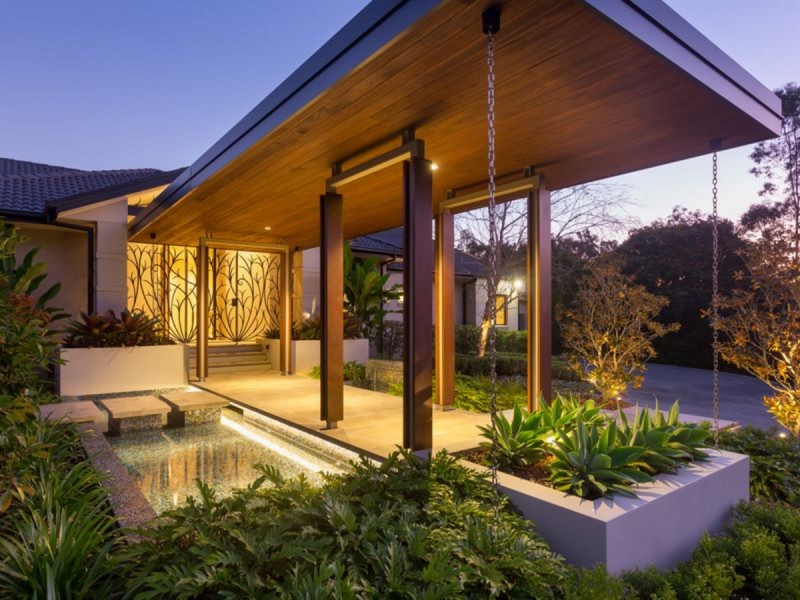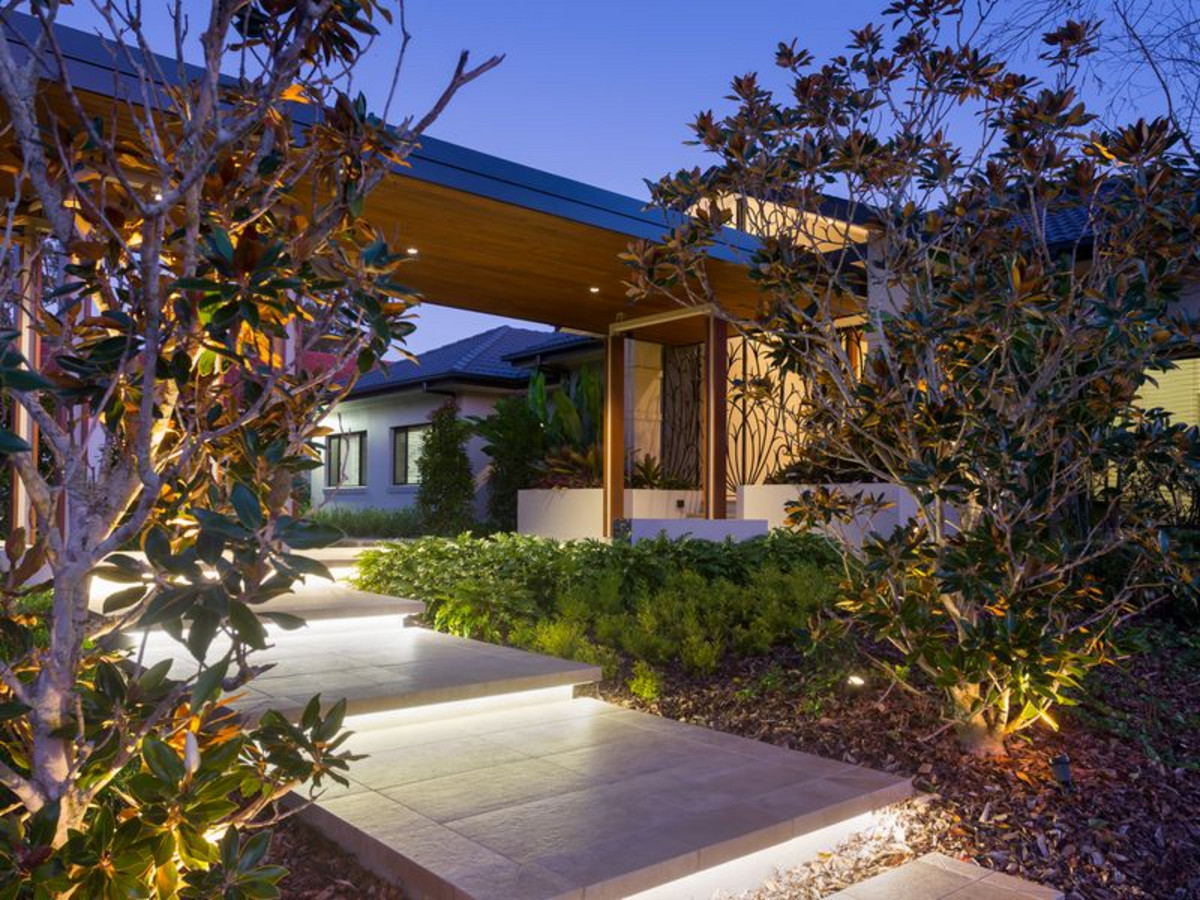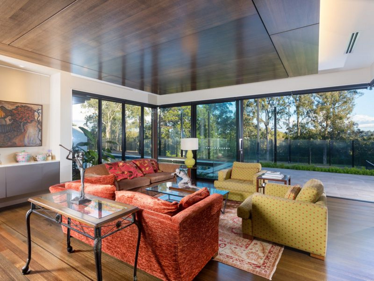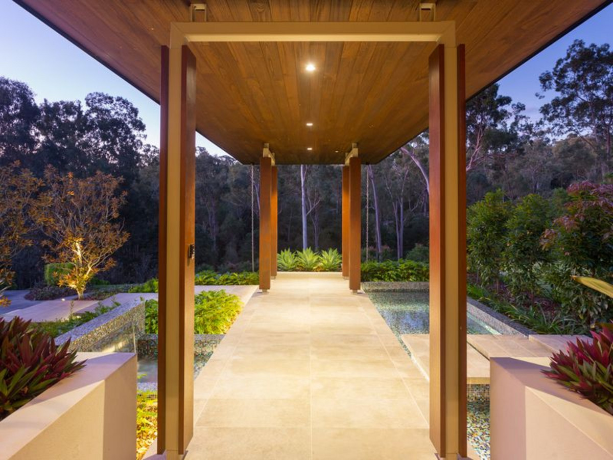 A newly completed renovation undertaken on the grandest of scales has transformed this riverfront estate, creating a sleek and sophisticated abode with a pool and tennis court amidst the private and elevated grounds. A colonnaded walkway across pools of running water provides a fitting introduction to the home, as does the custom wrought-iron gate. Inside, a formal foyer transitions seamlessly into the main living area, continuing the impressive, yet immediately welcoming feel. It is here that the scope and detail of the transformation is fully revealed, with a range of custom finishes all on hand to elevate the space to one of exclusive refinement. Amidst the high ceilings and banks of glass, these include immaculate floors of Tasmanian Oak, Integrated cabinetry topped with rare marble and backlit timber ceiling panels which have been used to delineate and define separate areas to great effect.
