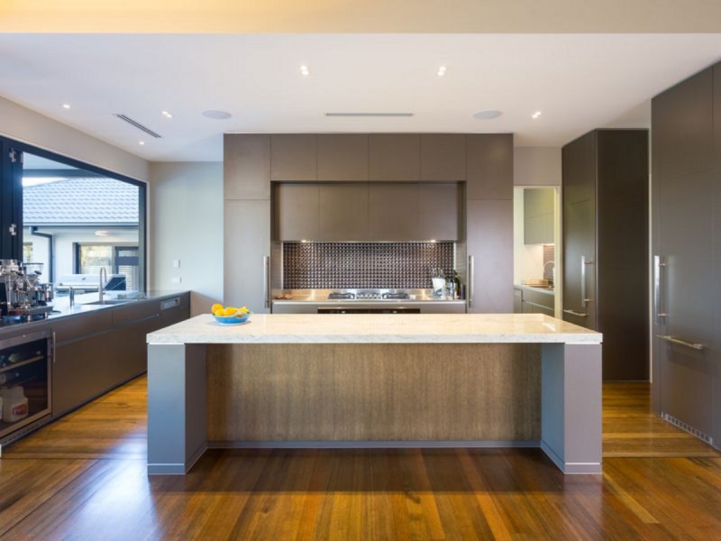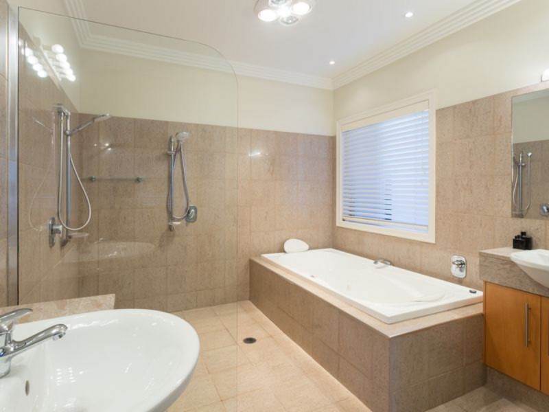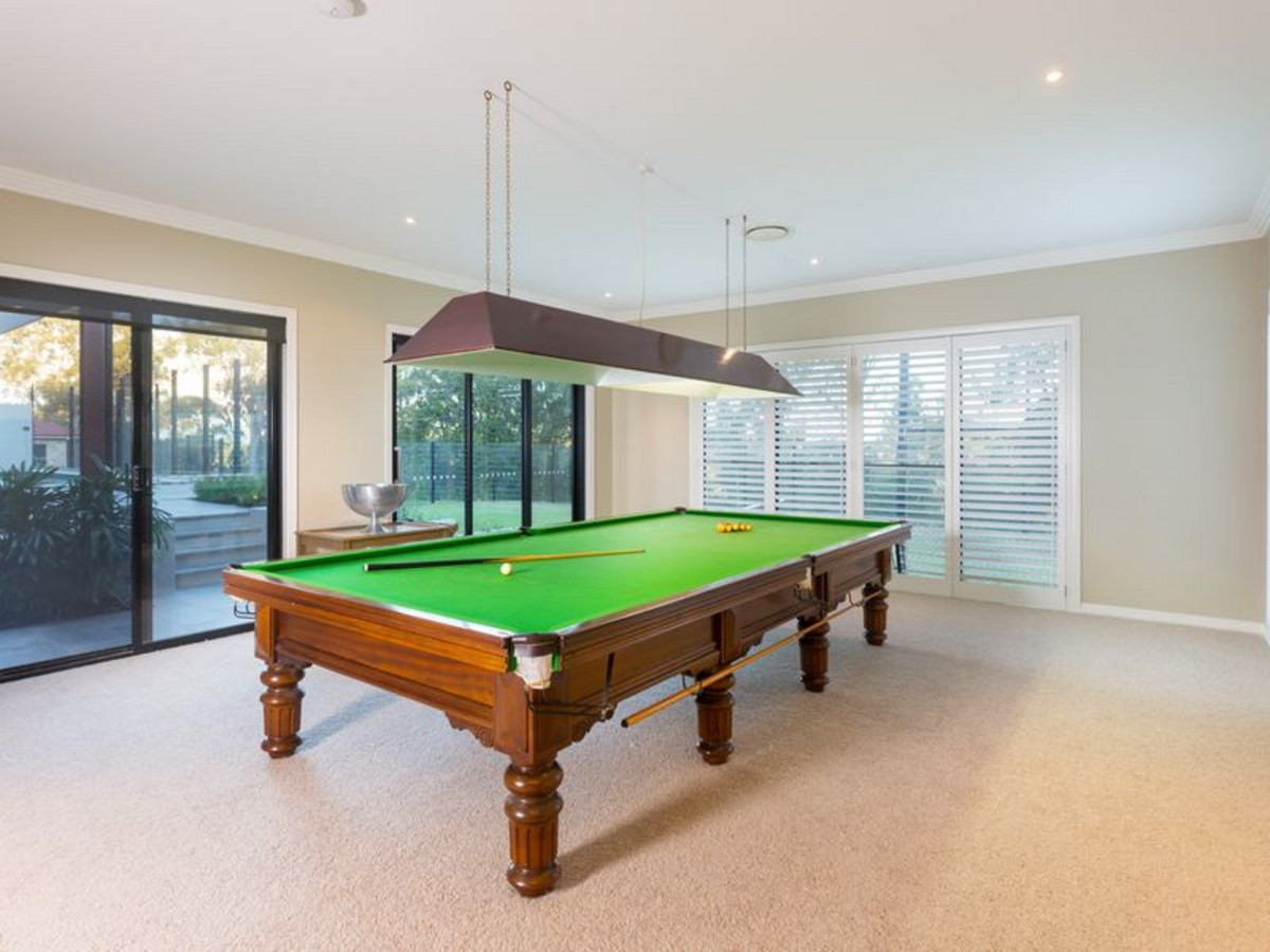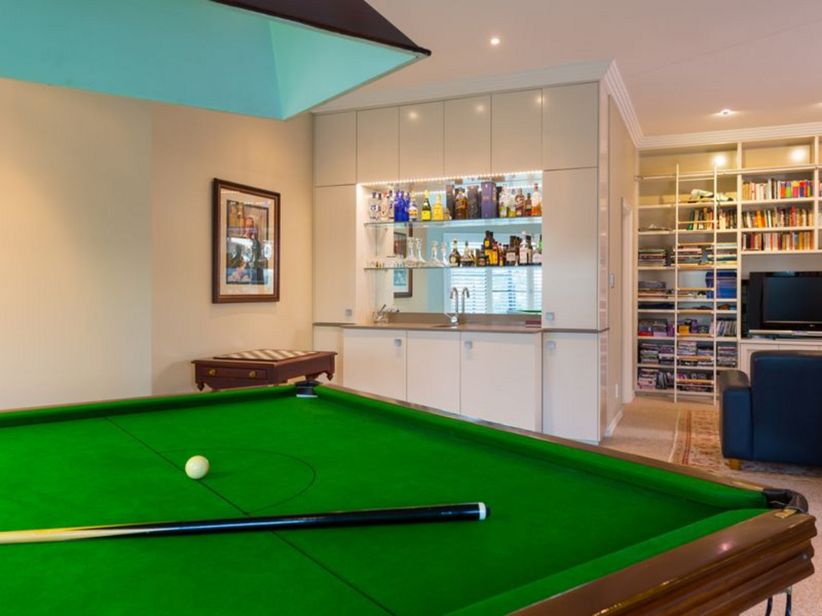 Created very much as a lifestyle-focused family home, the property also boasts a comprehensive range of features specifically geared towards relaxation and entertainment. While outside there is the salt-water pool and the full-size, flood-lit tennis court, inside a media room comes well equipped, as does the impressive games room which features a lounge, a wet bar and even space for a billiards table. The kitchen has also been custom built with lifestyle in mind, integrating a butlers pantry, Miele appliances and a sprawling marble-topped island bench into the highly specified design. Additionally, a separate bar area (complete with two Leibherr wine fridges) brings yet further usability to the installation, with a bank of bi-folding windows allowing it to do double duty as an outdoor kitchenette and servery when entertaining alfresco.