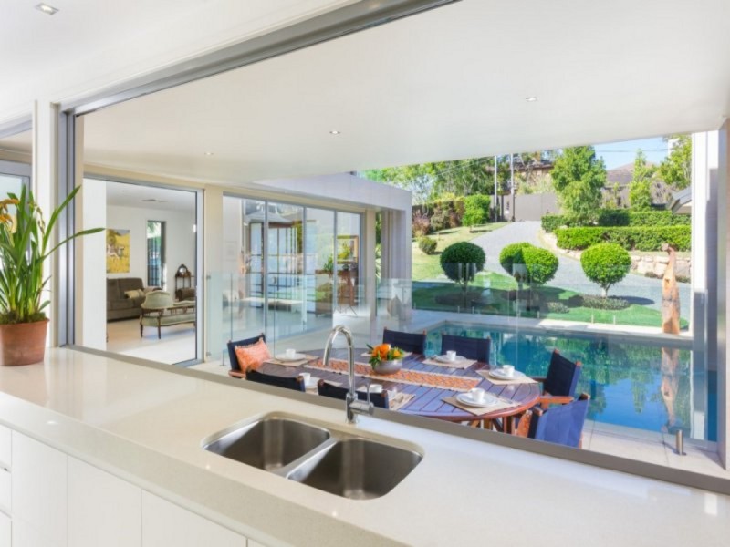 The property enjoys a very central locale, with the Indooroopilly Golf Club and the St Lucia golf course just around the corner and shops, public transport and good schools all within five minutes drive. Distinctive and imposing, this assertive property has managed to make its mark by utilising a striking design that really makes the most of its generous 1283m2 block. In turn this has created a remarkable property that has certainly set a precedence in Indooroopilly.