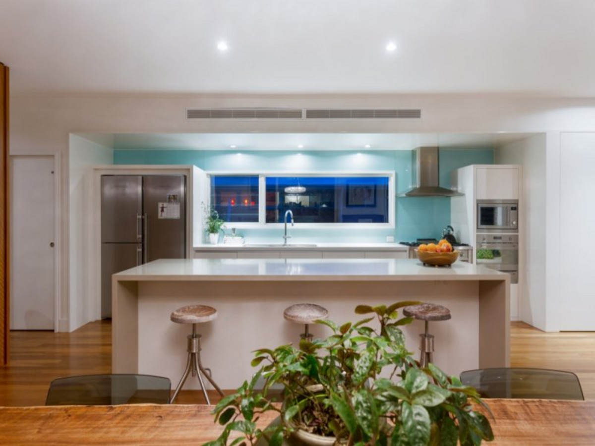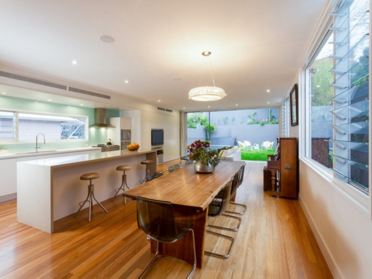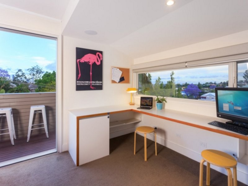 These custom features include display shelving, entertainment units, built-in wardrobes and study desks, all of which work in with the Brushbox hardwood floors, multitude of glass and relaxed indoor/outdoor vibe.The galley style kitchen is central to the home's layout, with high quality finishes such as Caesar Stone benchtops, stainless steel appliances (including 900mm Ilve Cooker) and a walk in pantry.The kitchen is surrounded by the large living and dining area, which then seamlessly flows out onto the immaculately maintained garden and 10m pool. A secondary living space is located nearby which has balcony access and far-reaching suburban views. Upstairs, a third living room/rumpus room and large study desk opens out onto the upper balcony which offers sweeping city glimpses amidst a vibrant suburban panorama.All four bedrooms are located on the upper floor with the spacious master suite listing a substantial walk-in wardrobe and ensuite. While all rooms are light and airy, the ensuite and family bathroom also offer designer good looks with European tiles and finishes.