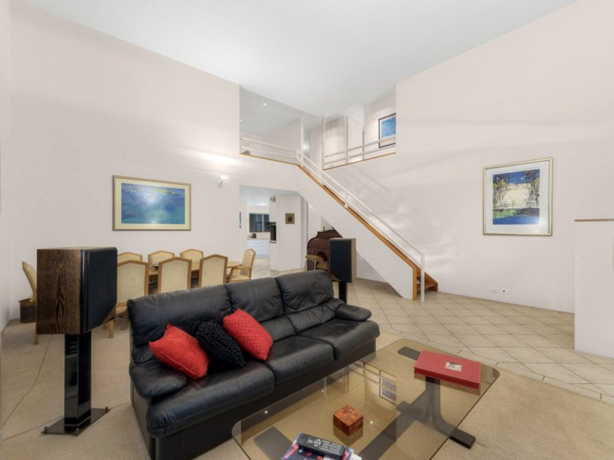 Inside, the lounge room boasts an impressive dual height ceiling complete with clerestory windows (yet another hallmark of an Andrew Wiley design). This leads through to a series of more casual areas which brings a versatility and a great separation of space to the overall floor plan. The impressively proportioned kitchen is positioned close by, with the truly expansive layout able to incorporate a large island bench or a breakfast table if so desired. Similarly impressive dimensions are apparent in the large laundry which features a sewing desk and plentiful cabinetry. A full bathroom and sauna have been positioned just nearby, with the house also listing a home office, a wine cellar and a dual car garage with additional storage.