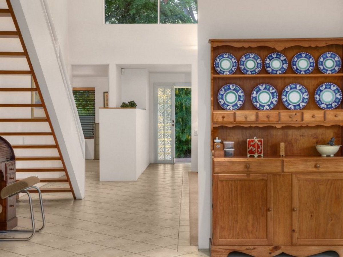 The house itself was designed by local architect Andrew Wiley, whose distinctive style of clean, angular lines, open plan living spaces and a proliferation of glass all feature prominently throughout. The pool also plays a central role, with the elongated design bringing water views to all main living areas of the home. Surrounded by terracotta paving and easy care gardens, the space is ideal for entertaining. There is even a standalone pool house that currently has power and a water line run to it, making it easy to renovate and develop further.