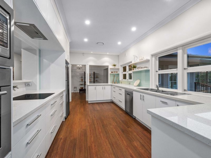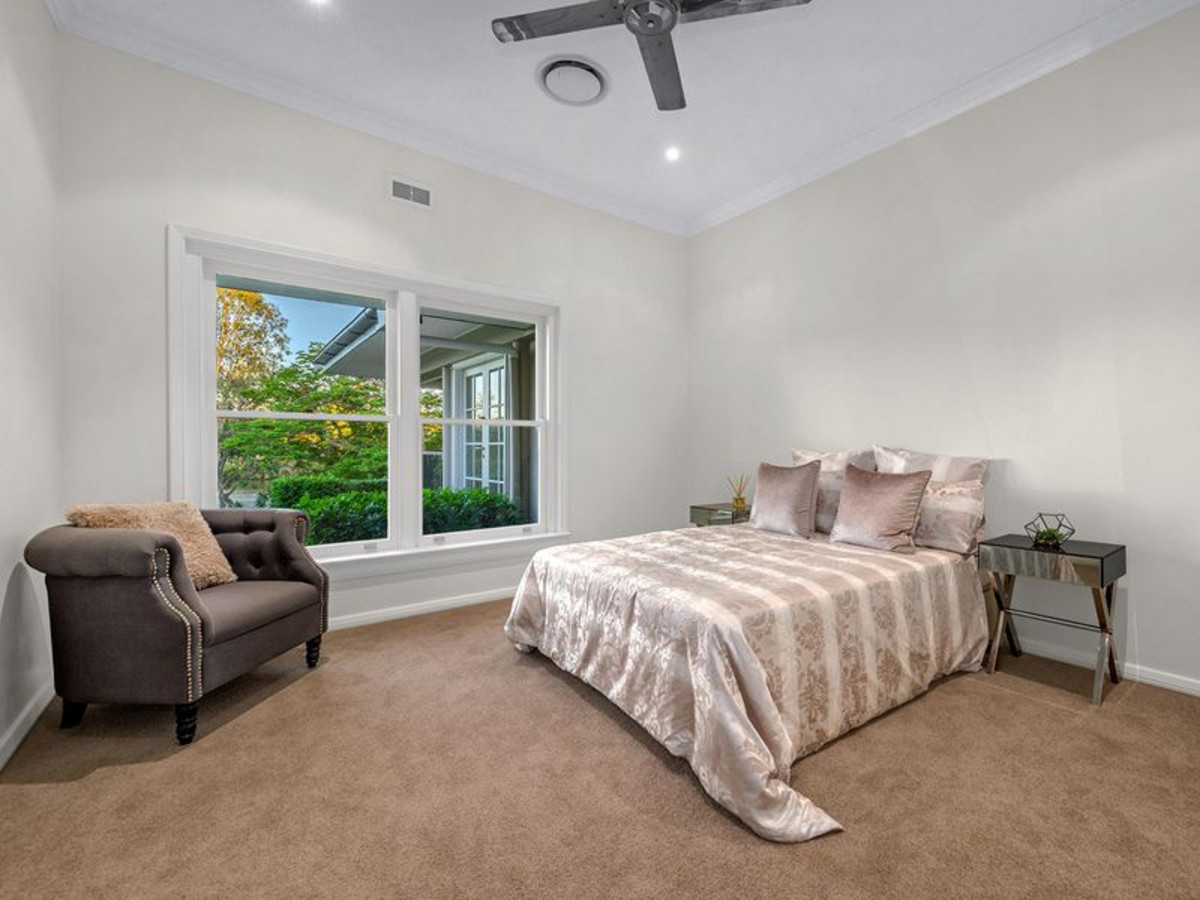 Set on one level, the home features rooms of large proportions totalling 550m2 of beautifully flowing floor space. The modern upscale kitchen has been tastefully renovated keeping with the era of the home, built in the 1950s. The high-end Italian Ilve oven, stovetop and dishwasher, quality cabinetry, soft-close drawers, pale blue glass splashback, breakfast bar and casement windows combine to create a stylish, understated and highly functioning kitchen sure to be the envy of your guests. It connects to an equally smart laundry aiding in the day-to-day practicalities of family living.
