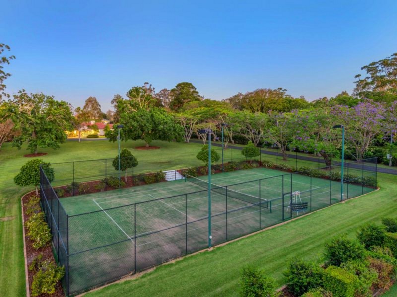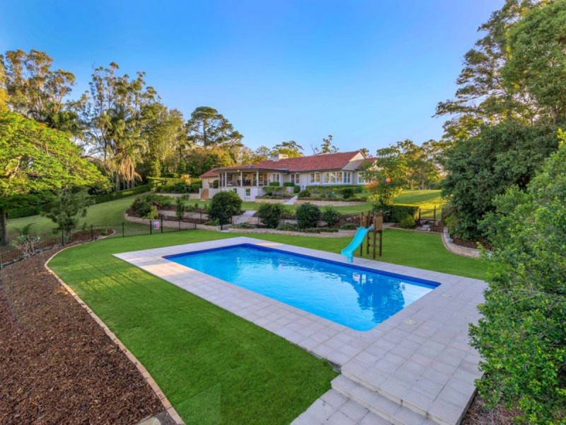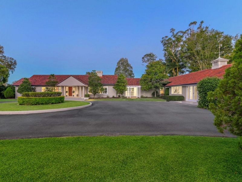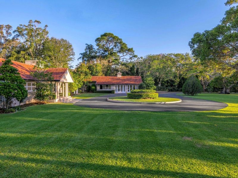 Escape to the privacy of this extraordinary estate, one of just three properties on a quiet and tranquil dead end street, and revel in its beauty from the moment you arrive at the secure front entry gates. Follow the long, paved, tree-lined driveway where overhanging branches provide a spectacle of dappled sunlight and shade. As you head towards the main house, soak up the views of the stately grounds before arriving at the turning circle where this picture perfect home with its red tiled roof and multiple gables creates a delightful welcome.