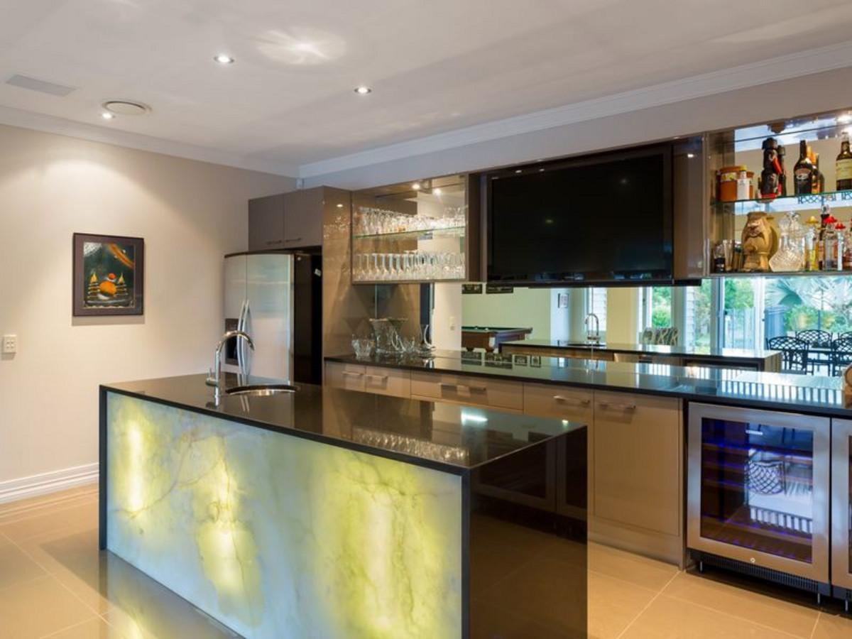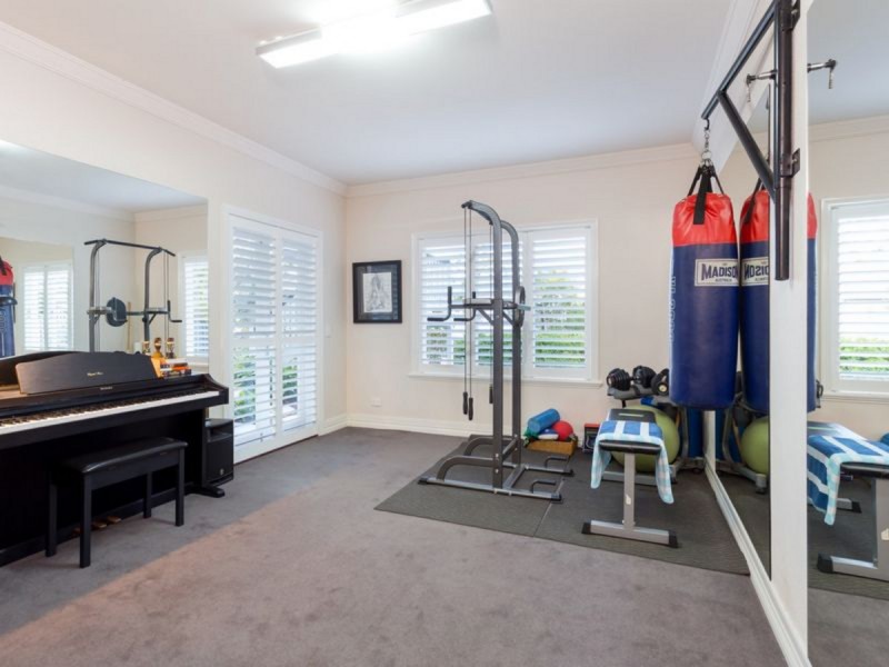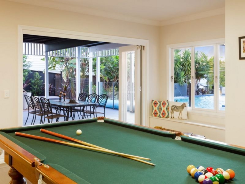 Back inside, the master bedroom is a peaceful retreat featuring a walk-in-wardrobe and large ensuite with standalone bathtub, shower and toilet. Two additional bedrooms, one with an ensuite and one next to the bathroom, complete the upstairs level. Families will enjoy the big level backyard with its plush lawn and modern landscaped gardens. You'll also have fun all year-round by the sparkling solar-heated pool surrounded by established tropical gardens and a large patio, all set upon the sweeping 1215m2 block on three lots. The downstairs level of the home is complete with high-tech media room with four Gold Class-style armchairs and oversized screen all inclusive. There is also a rumpus, wet bar, powder room, laundry, additional bedroom with ensuite and multipurpose room with separate entry ideal for teenagers or a home office. There are so many valuable inclusions in this remarkable home: ducted air-conditioning (cooling/heating) with eight zones and upstairs/downstairs controllers; front gate intercom and Bosch security system in-house; ceiling fans in all four bedrooms; underground 33,000L water tank plumbed into the laundry, toilets and garden that automatically switches to mains when the tank is low; irrigation system and inbuilt garden lighting; three car lock-up garage with roller door leading to back of house and storage room.