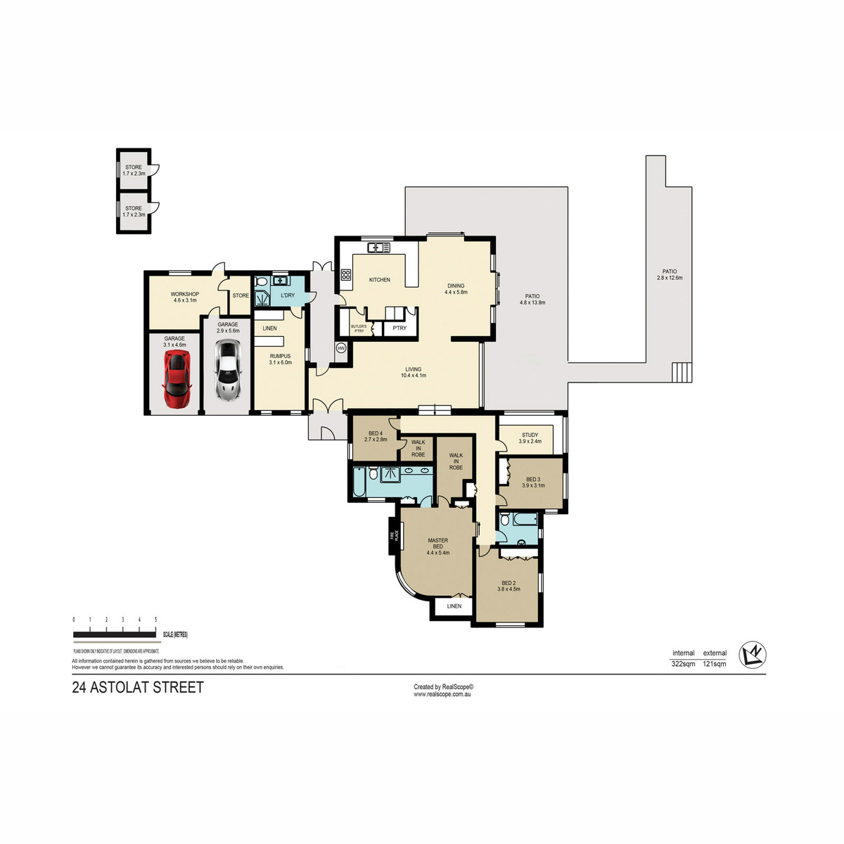 The master bedroom is spacious with two walk-in wardrobes, a large ensuite and a fireplace. Like the rest of the home, it offers significant scope to renovate and totally re-imagine.There are three additional bedrooms and a riverside study, along with the family bathroom. A fifth ensuited bedroom meanwhile, can be found in a semi-detached wing positioned off the main home alongside two garages.