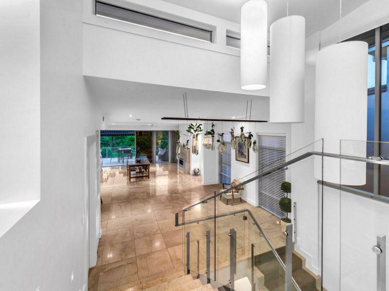 Modern, elegant and sophisticated, this immaculately presented two-storey executive residence located in a private enclave in beautiful St Lucia makes a stunning impression from the moment you arrive. An architectural masterpiece, this home has been built to exacting standards and includes suspended concrete floors and walls. Exceptionally appointed, it excels in every aspect. Its central staircase sits within an enclosed atrium surrounded by floor to ceiling glass walls and clerestory windows that allow natural light to pour into the grand space.