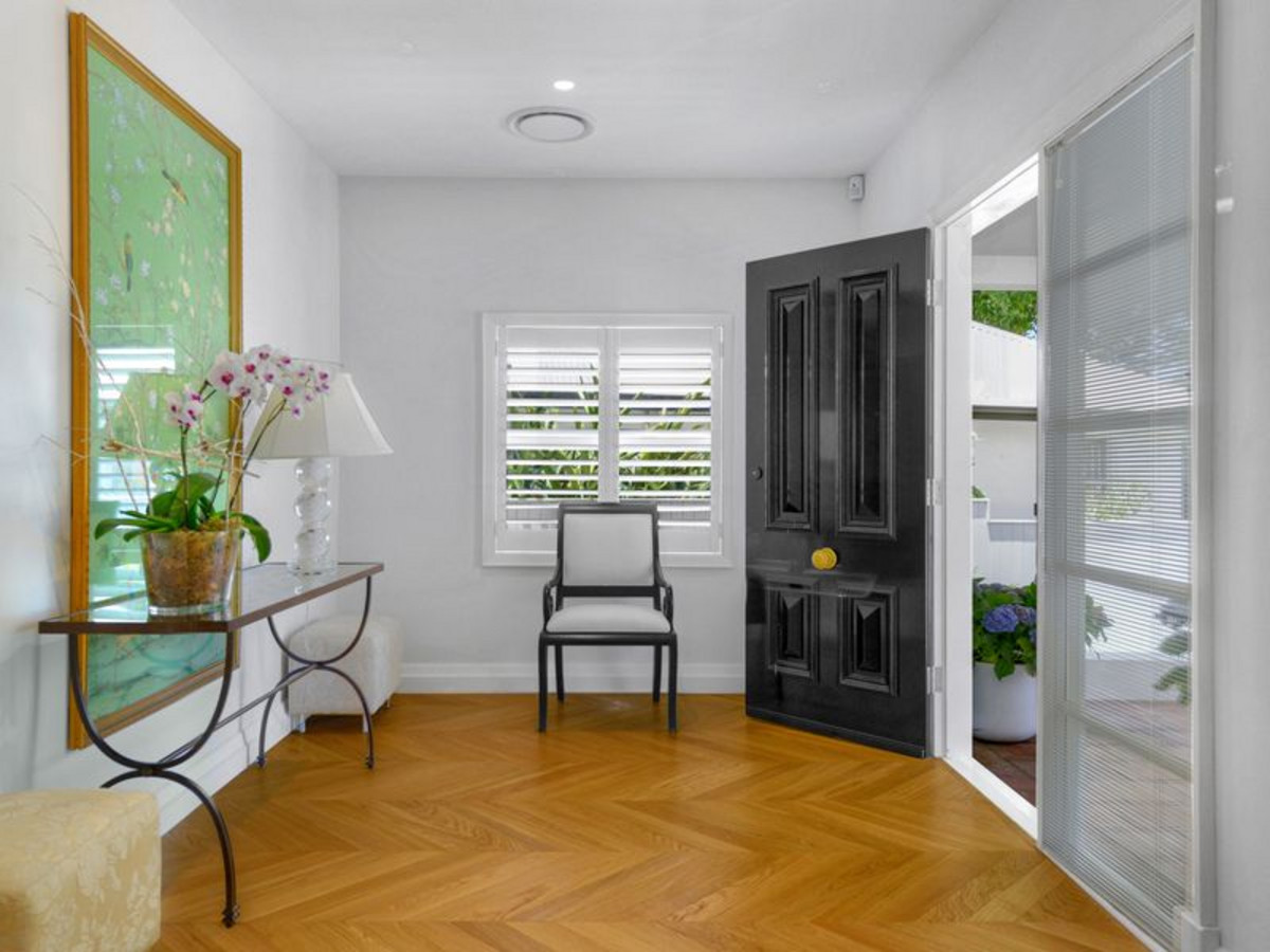 Modern designer living meets warmth and charm in this ravishing two-storey riverfront home located on a private and tranquil allotment in beautiful inner-city Fairfield just four kilometres from the Brisbane CBD and with approved plans for an inground pool. With a superb floorplan and 6 star finishes straight out of a Vogue Living magazine, the attention to detail in this extraordinary home is evident at every turn. Arrive at the striking ebony front door and inside the elegant foyer where stylish chevron patterned European oak flooring begins and continues throughout the home.