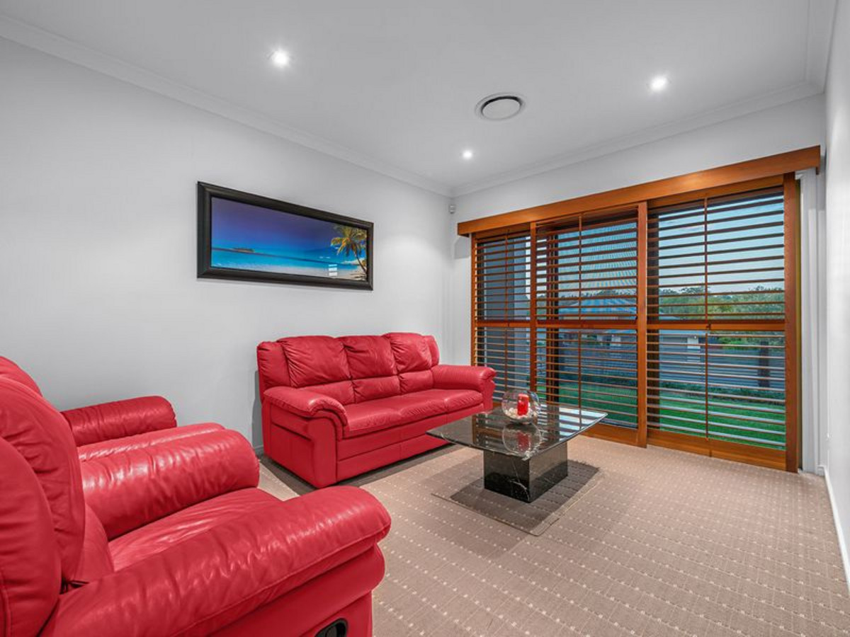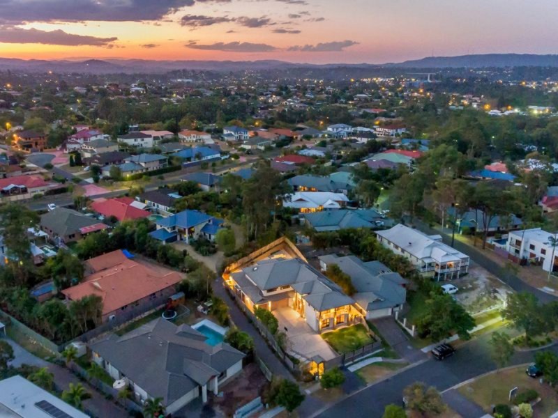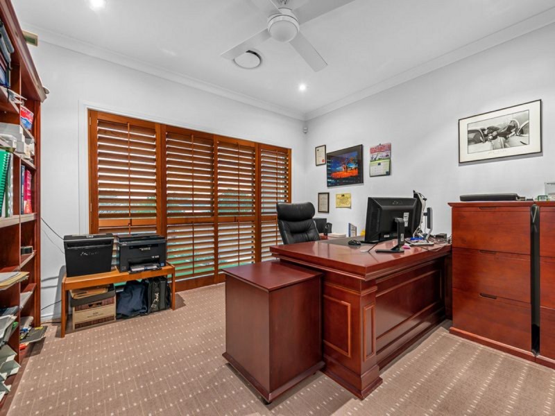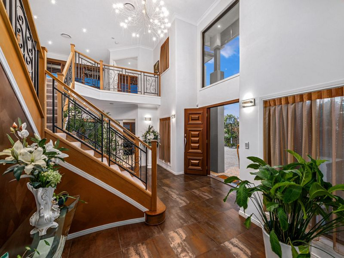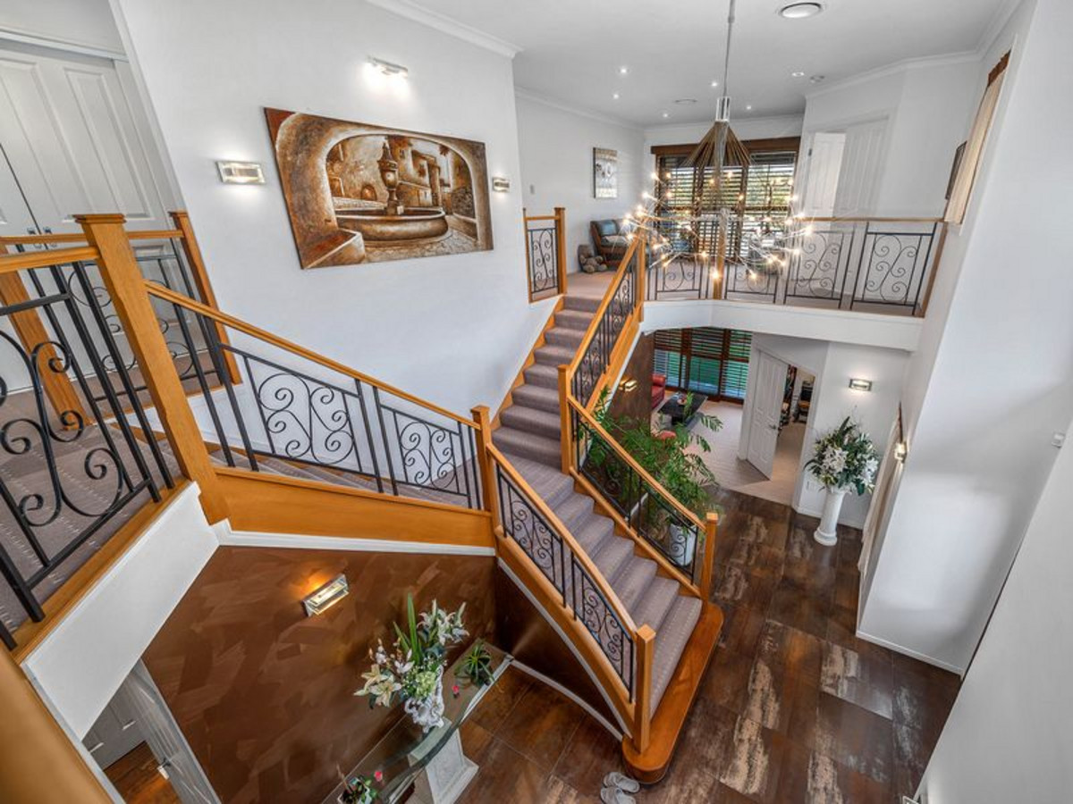 The enviably large block measuring 978sqm provides privacy and plenty of space, with a large front lawn and idyllic entertaining area out back. Here, a stunning pool with waterfall feature surrounded by landscaped gardens connects to the large undercover outdoor living area. Quality fossilized sandstone tiles elevate the resort-like pool area, providing an earthy and sophisticated setting for those long summer days relaxing by the water's edge. This exceptional home is packed with valuable features including a complete home automation system with smart living automated lighting system, ceiling fans and air-conditioning throughout, all rooms prewired with phone and data ports; 6.75kW solar power system, 23,500L underground water tank; full security fencing, front entry gate with security cameras and intercom.