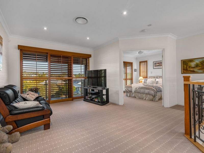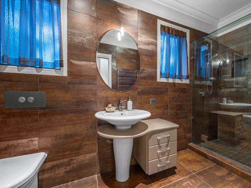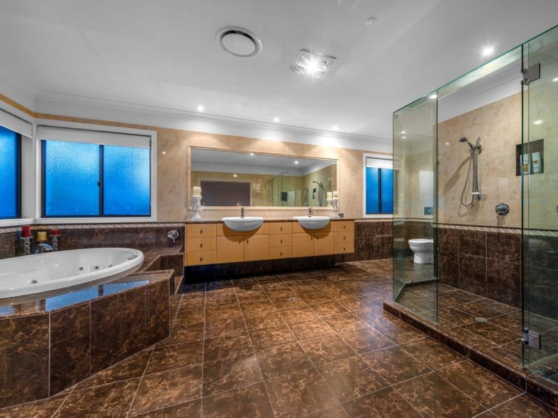 On the upper level, the immense master bedroom is a true retreat. It offers a separate getaway for parents to kick back and relax away from the hustle and bustle of family living. There is ample space for a king suite along with a seating/media area to unwind. There is also a massive walk-in-wardrobe with centre island and sensor lights and a huge ensuite complete with luxurious circular spa bath, separate double shower and double vanity.