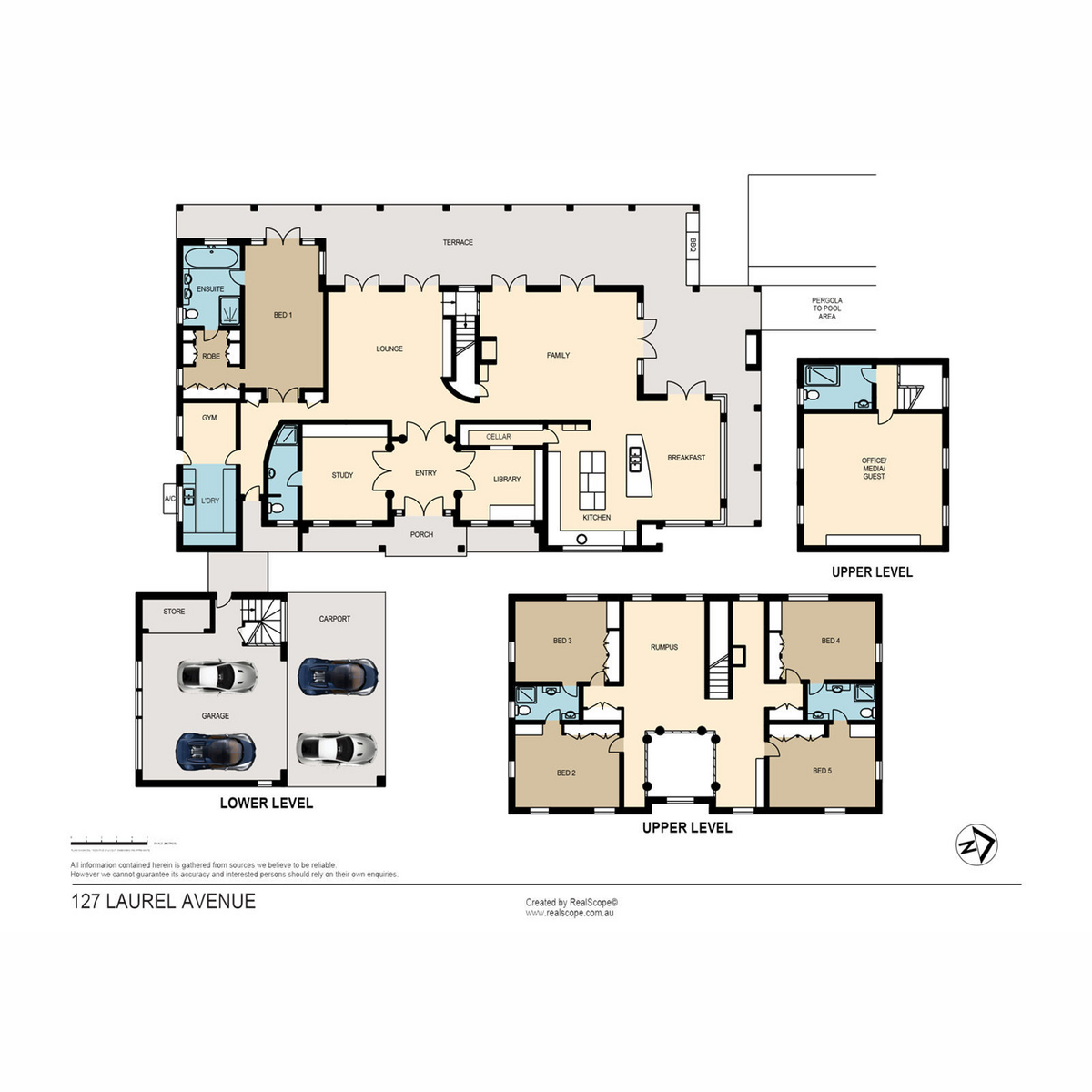Traditional and homely with all the modern conveniences, this idyllic family home with multiple indoor and outdoor living areas is spread across a beautifully flowing floorplan measuring a generous 750m2. There is so much to love, from its charming French doors and windows throughout and log fireplace in the family room to the polished timber floorboards on the top floor and grand master bedroom's ensuite with claw foot bath. And that's just the beginning. The kitchen, dining room and family room all overlook the magnificent pool area surrounded by beautifully landscaped grounds featuring established gardens and wide spanning views of the river. Elegant hedging around the tiled pool and separate spa creates a private oasis. Enjoy the outdoors all year round, whether firing up the stylish inbuilt barbecue and relaxing by the pool or gathering in the undercover terrace around the outdoor log fireplace. On the second level, four bedrooms all include their own ceiling fans, built-in wardrobes and desks and direct access to one of two ensuites. Two of the bedrooms on this level also enjoy river views, along with the central rumpus room. Another library/study room completes the top floor, providing plenty of room for family members to find their own space around the home as needed.