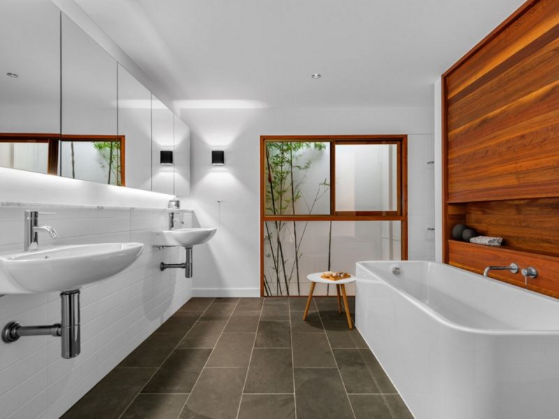 Clever design features, quality materials and architectural interest is evident at every turn of this remarkable home, such as the spotted gum floors and joinery, architectural lighting and double-height void with indoor bamboo garden. The large and beautifully grassed level backyard is every family's dream for spending time together playing outdoors. When it's time to cool off, jump in the spectacular infinity salt-water pool surrounded by beautiful Australian natives in the low maintenance gardens. This idyllic home also has a terraced vegetable garden with a well-established lime tree and a large rain water tank with dual water system for the bathrooms and the pool. There is plenty of parking for the whole family with three undercover car spaces and extra fourth car space. Additional features include zoned ducted air-conditioning for year-round comfort, mud room arrival, workshop and loads of storage throughout the house.