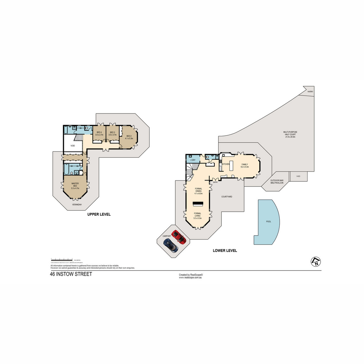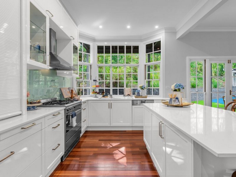 The modern Hamptons-style conservatory kitchen adjoins the family room and overlooks the gardens, pool and multipurpose court through a bay of panelled windows allowing natural light to pour into the space. The kitchen features stone benchtops, top quality Smeg appliances including six-burner gas cooktop and large oven, island bench with breakfast bar, floor-to-ceiling storage, high ceilings and glass display cabinets. There are multiple indoor and outdoor living areas for the whole family to relax and entertain in this wonderful home. Get cosy next to the wood-burning fireplace in the main living room during the cooler months and open up the doors onto the front gardens when the weather turns warm. Enjoy family movie nights or sporting events in the media room complete with full surround sound. An outdoor bar and BBQ pavilion is the perfect spot for celebrating special occasions and watching all the action on the multipurpose half-court, perfect for basketball, netball, volleyball or soccer. The lush lawns also provide an idyllic space for children to play surrounded by beautiful greenery and trees offering plenty of shade. And let's not forget the paved courtyard with stunning in-ground pool! Bedrooms are privately located on the upper level. Escape to the spacious master retreat with French doors on all sides opening onto the breezy wrap-around verandah with river views, large walk-in-robe and ensuite with luxurious spa bath, double vanity, chandelier and new tiles and tapware that give it a fresh new look. All additional bedrooms feature built-in robes and double doors also opening onto the wrap-around verandah. A brand new bathroom on the upper level services these rooms and includes a beautiful island bath, shower and separate toilet. Additional features of this remarkable residence include ducted air-conditioning, intercom system, security fence around the property, brand new laundry and large storage shed.