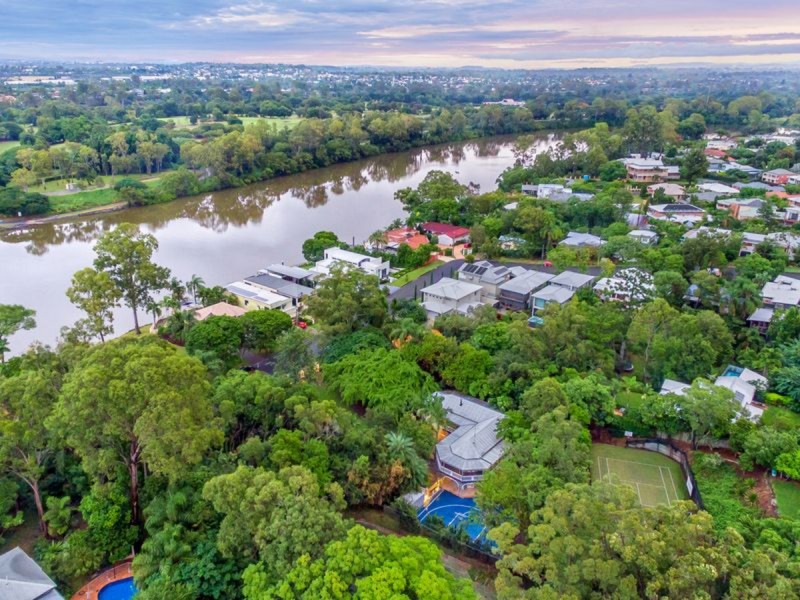 With its idyllic position at the end of a cul-de-sac in one of Yeronga's most exclusive riverside addresses, this elegant Hamptons-style forever home with river views is set upon a sweeping 2467m2 flood-free allotment featuring magnificent grounds, sparkling in-ground pool, floodlit multipurpose half-court for sports lovers and so much more.