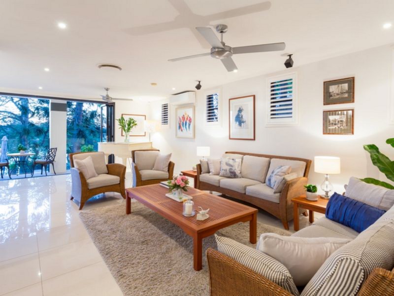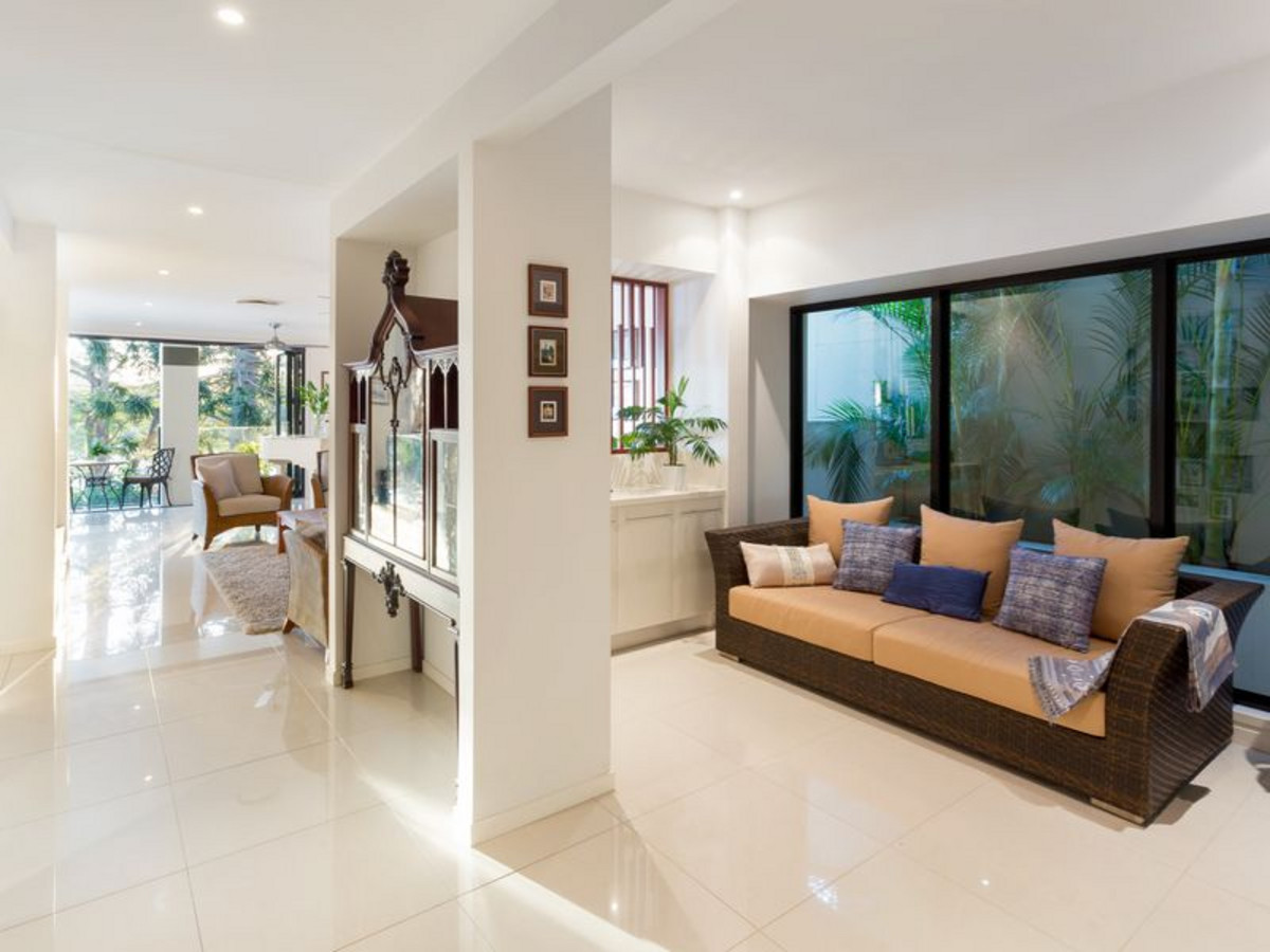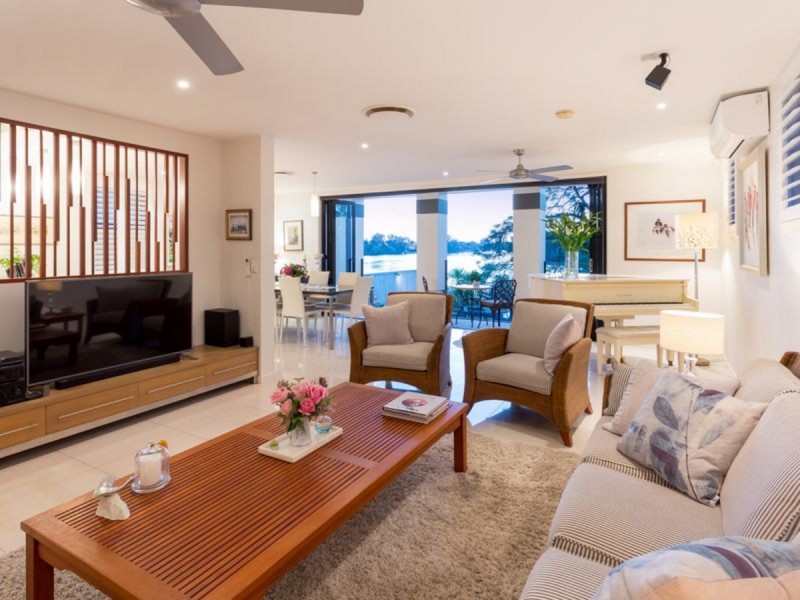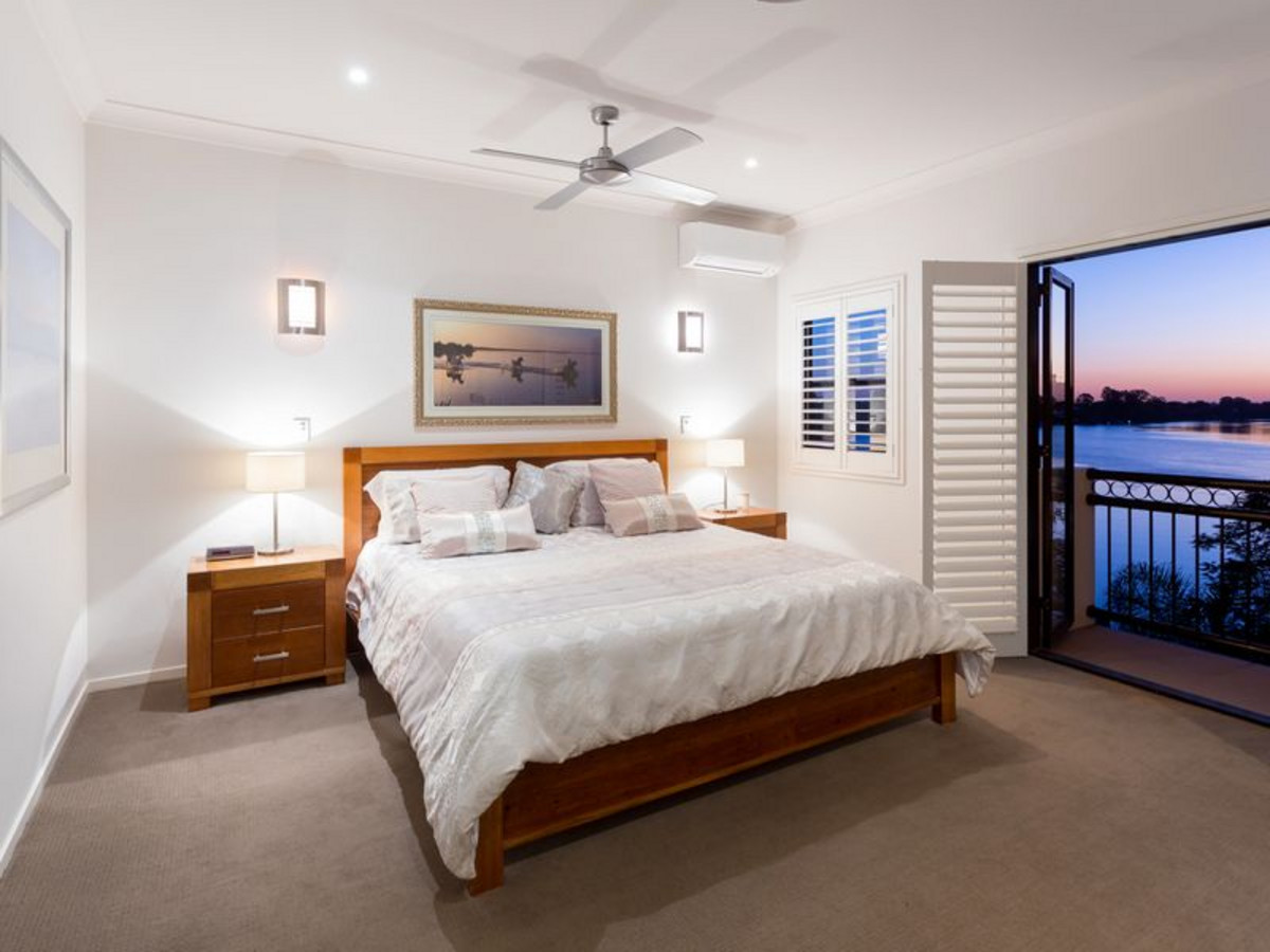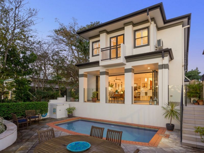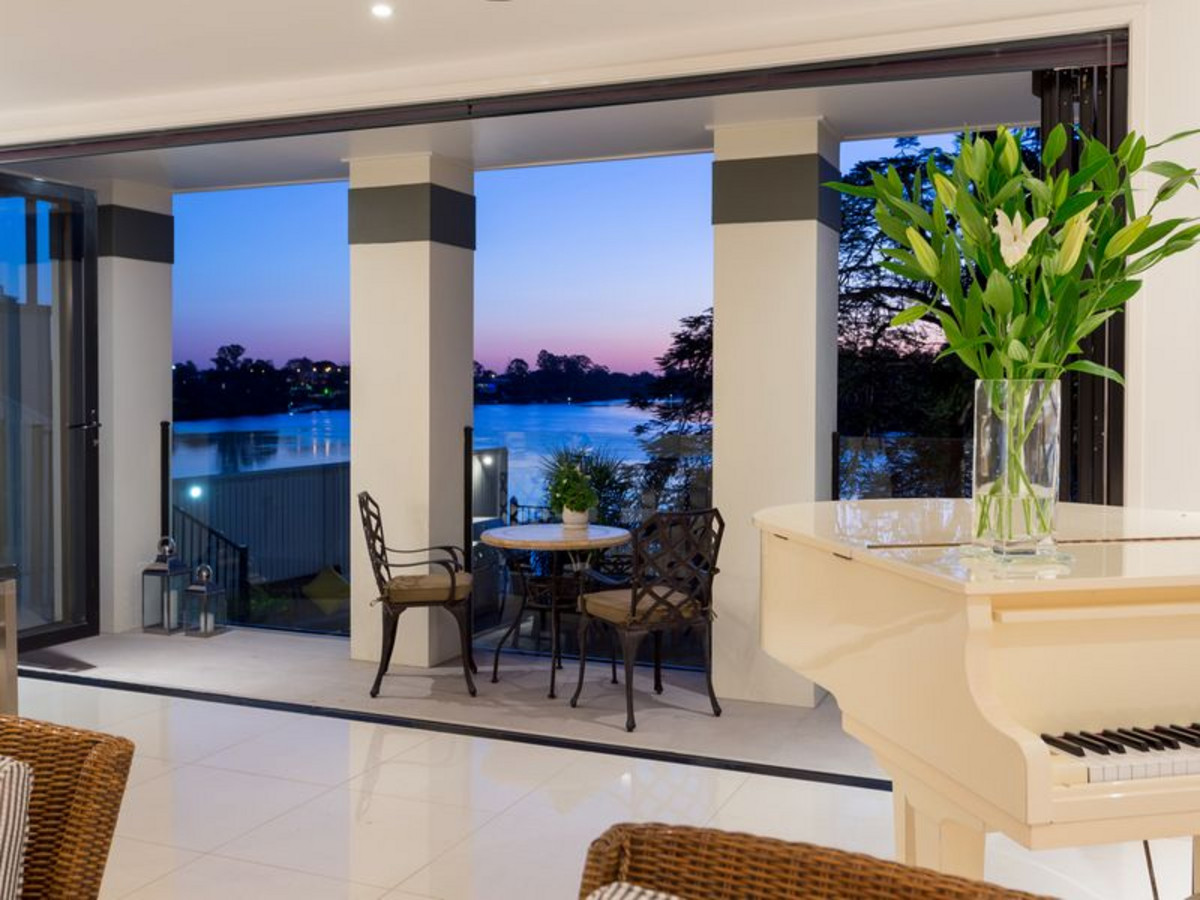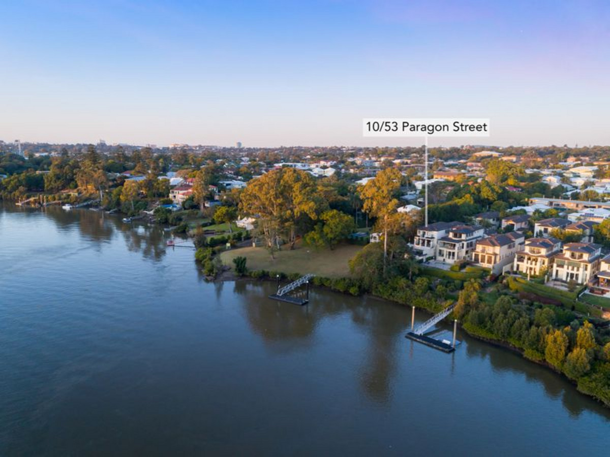 Ideal for the modern family, this wonderful two-storey home enjoys stunning views of the Brisbane River across to Indooroopilly Golf Course, cooling river breezes, beautifully landscaped gardens, an inviting pool and outdoor entertaining area, a floor plan that flows and modern finishes throughout. Private and extremely quiet, this magnificent home is the best in the complex offering the largest and widest block, the quietest position at the furthest point from the street, large overhanging shade trees and private and direct access to the pontoon through the garden.