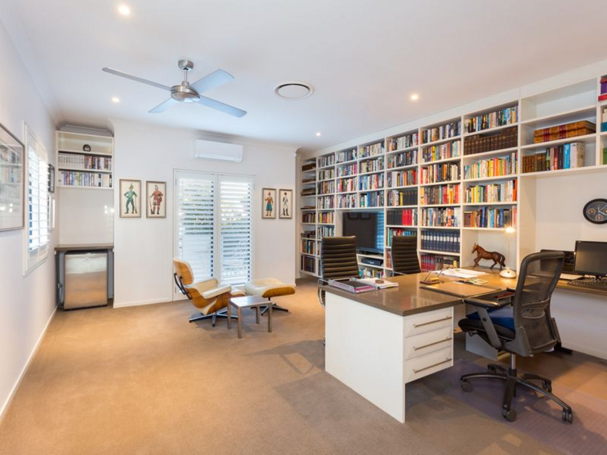 Completing the delightful ground floor is a sitting room, bathroom and laundry. On the upper level of the home, a large multi-purpose family room and handy built-in bookshelves provides a second space for family members to gather or find separation when needed.