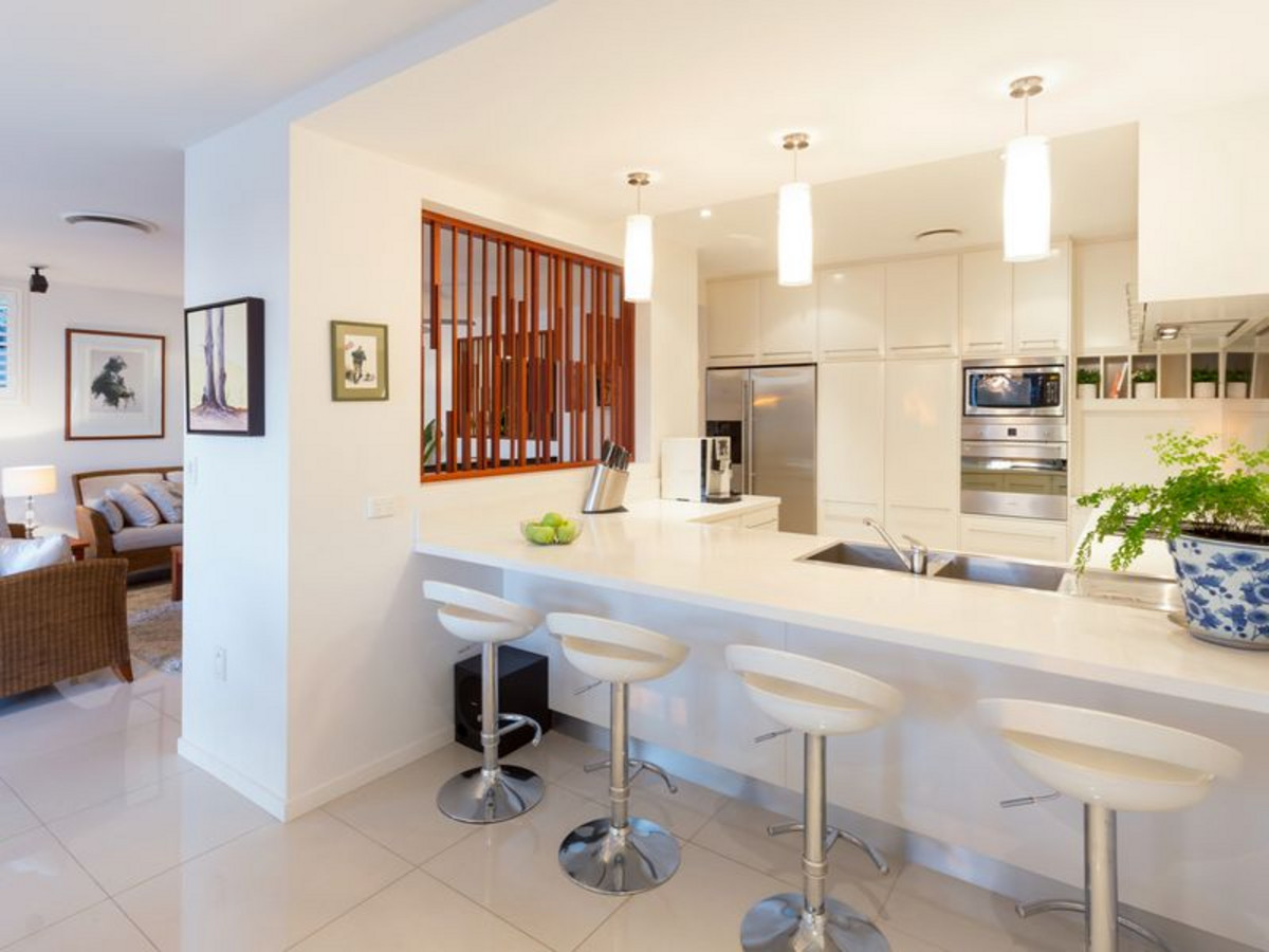 Beautifully renovated inside in recent years, the home offers an open plan kitchen, living and dining area on the fully tiled ground floor opening onto the stylish outdoor area through bi-fold doors. This offers a lovely connection between indoor and outdoor living and to the home's glorious river setting. The gourmet kitchen is perfect for the modern-day cook with large stone benchtops, breakfast bar, stainless steel splashback, top of the range Smeg appliances including a self-cleaning oven, gas cooktop, soft-close cupboards and drawers and modern pendant lights.