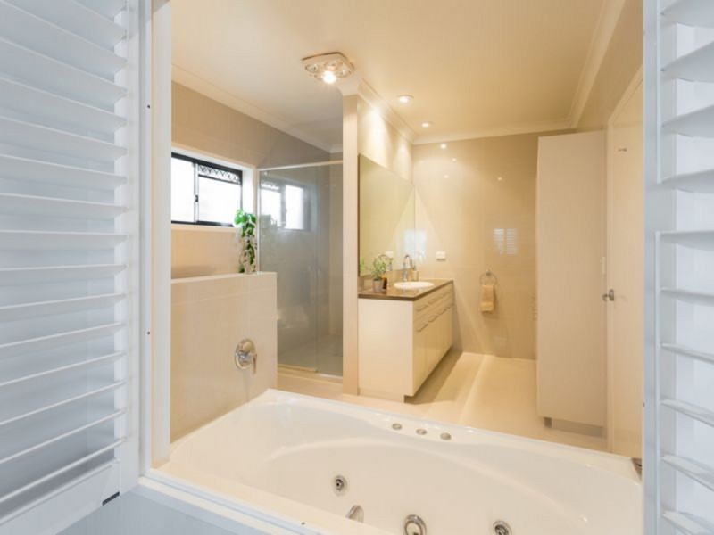 The master bedroom is a true retreat. It enjoys a private balcony with elevated river views and also has its own large walk-in-wardrobe and ensuite with luxurious spa, large shower and useful storage cupboards. The remaining three bedrooms are spacious, light and bright and serviced by an upstairs bathroom sure to keep the whole family happy and running on time. All bedrooms feature plush carpets underfoot and ceiling fans. Relax or entertain from the comfort of the large outdoor entertaining area with its beautiful pool and paved seating area while enjoying close-up views of the magnificent Brisbane River.